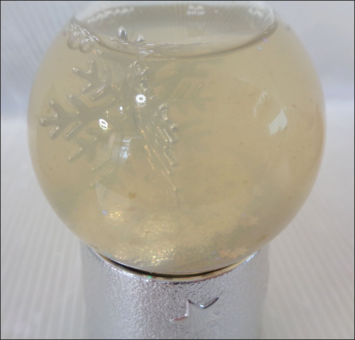 経年によりスノードームの中の片寄り、減水や変色にごり汚れが見られます。