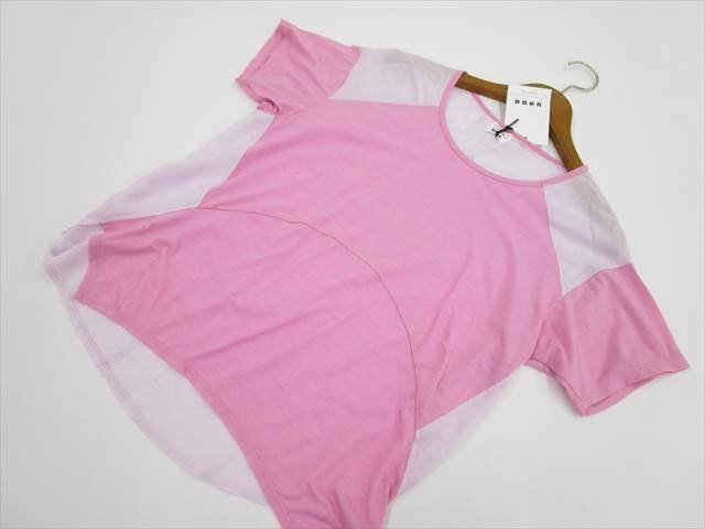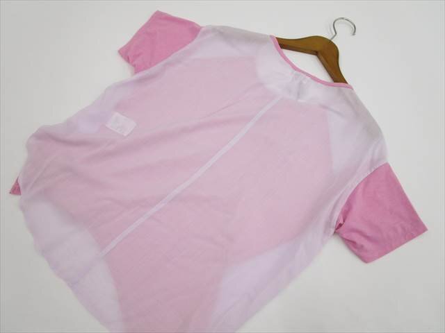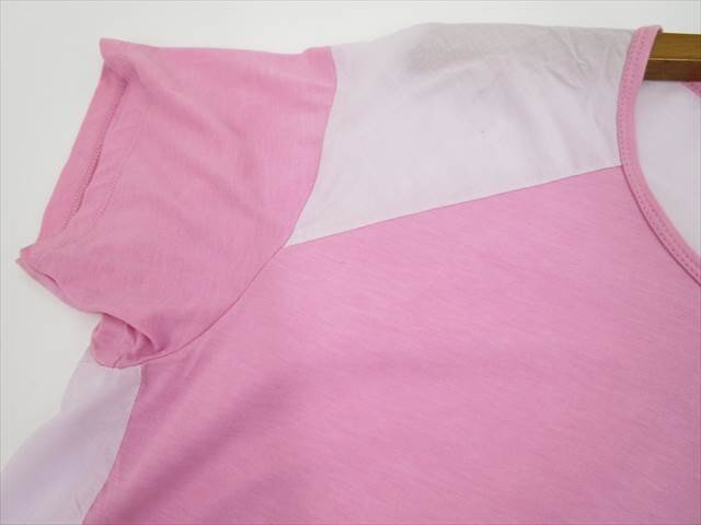 半袖 ラウンドネック カットソー 2 ペールピンク×ピンク 【メール便可】