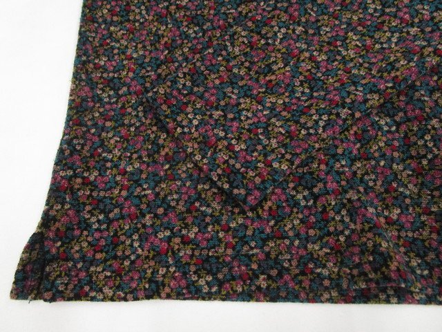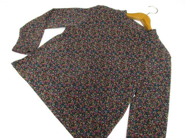 長袖 クルーネック ニットカットソー ブラック地 ターコイズ×ピンク×キャメル 小花柄