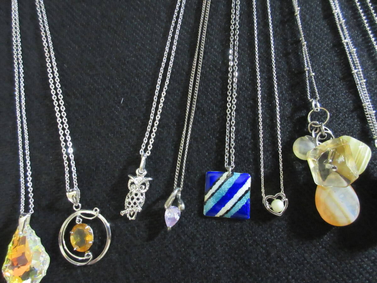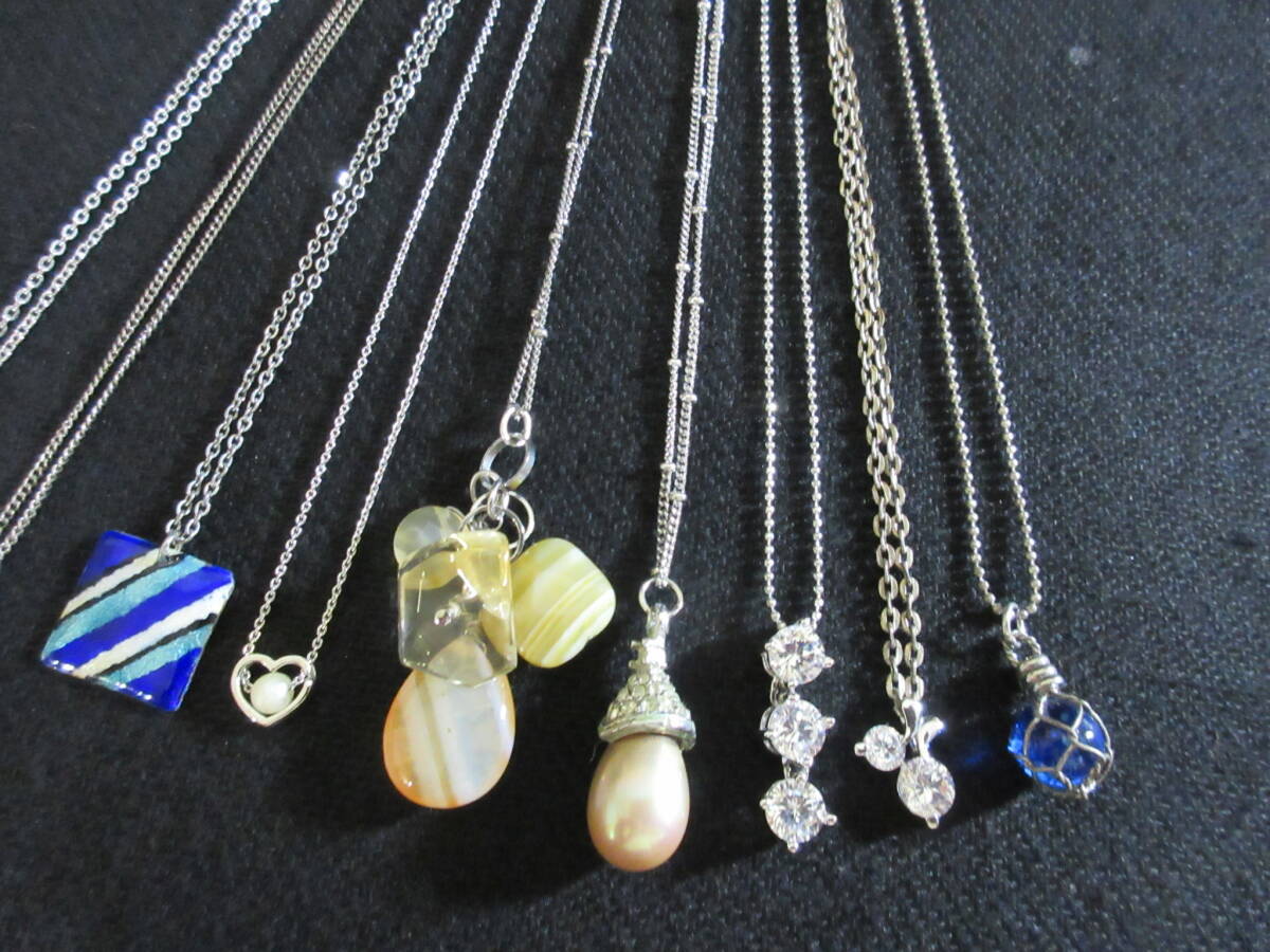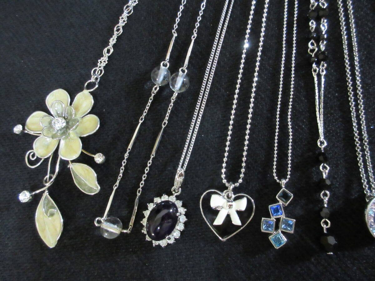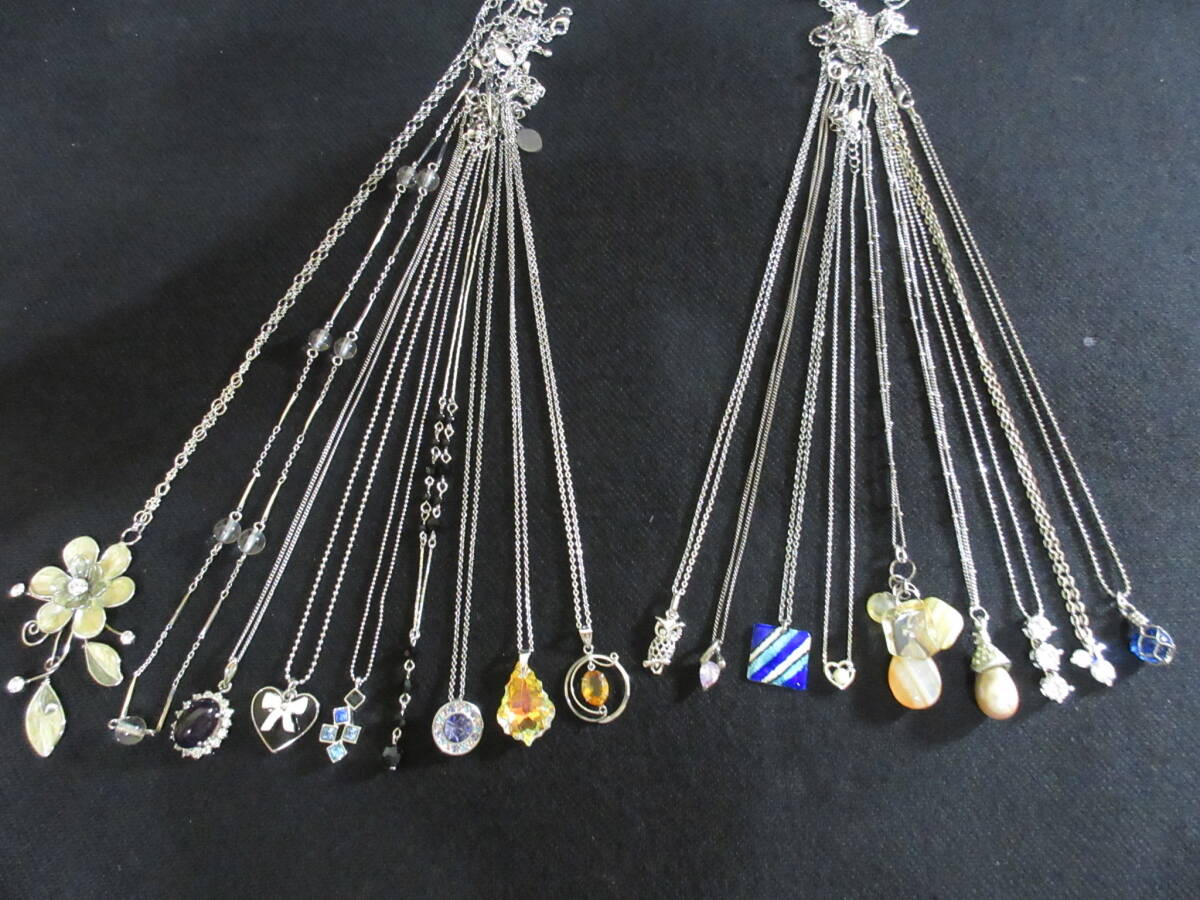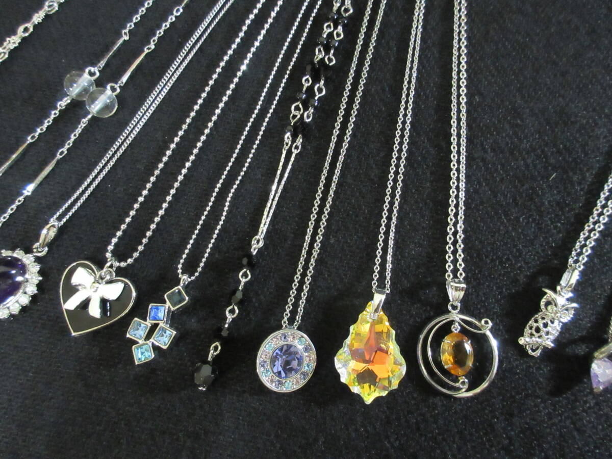 *100円~【大量】トップ CZ/天然石/七宝焼/ガラス/パール/ラインストーン使い シルバーカラー デザイン色々 ネックレス 18点セット*K-88