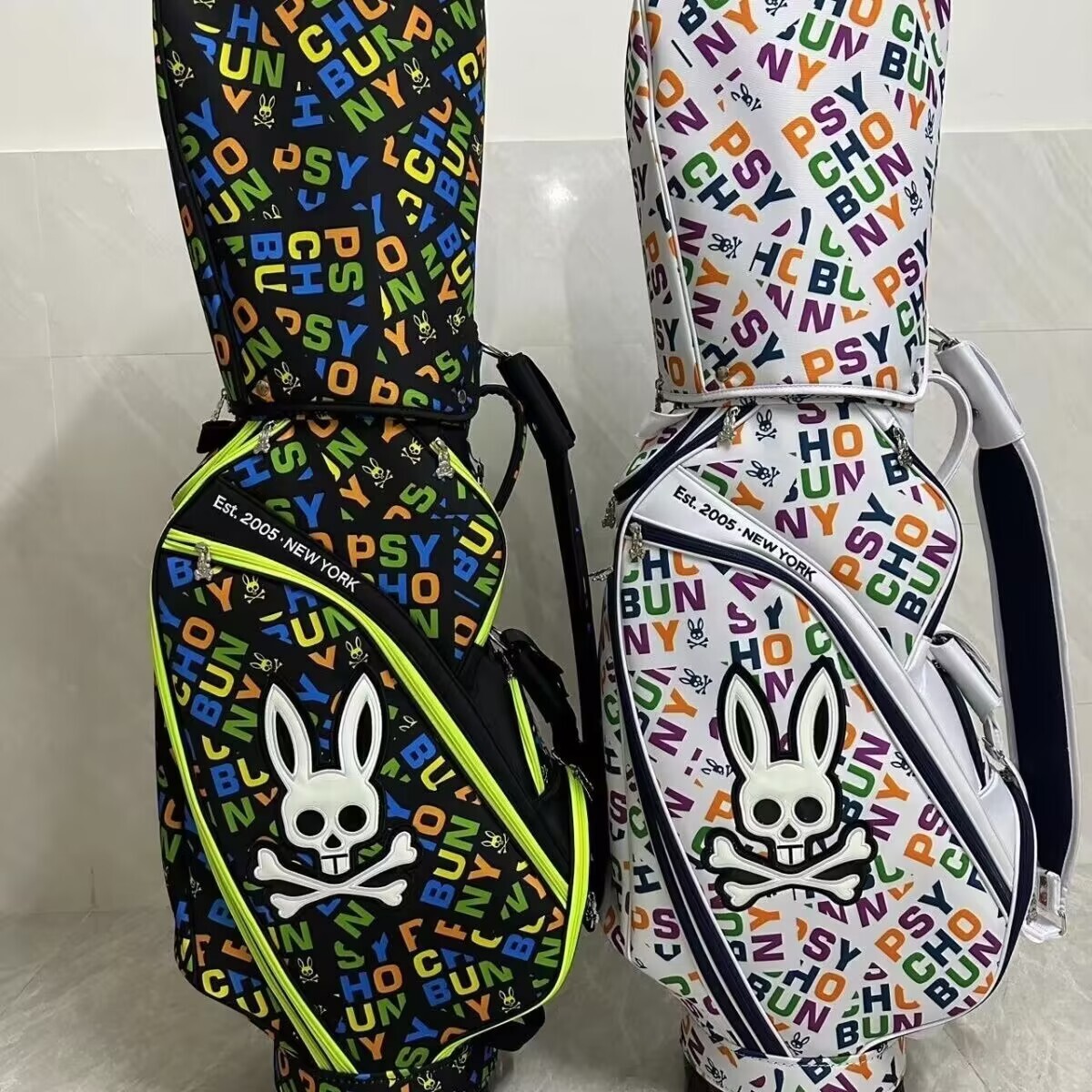 psycho bunny ゴルフ キャディバッグ アメリカ スタンド型 軽量 収納バッグ ブラック ss0355-9