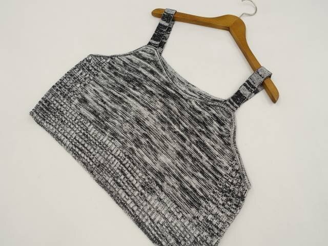 美品 ニットキャミソール ホワイト×ブラック ミックス