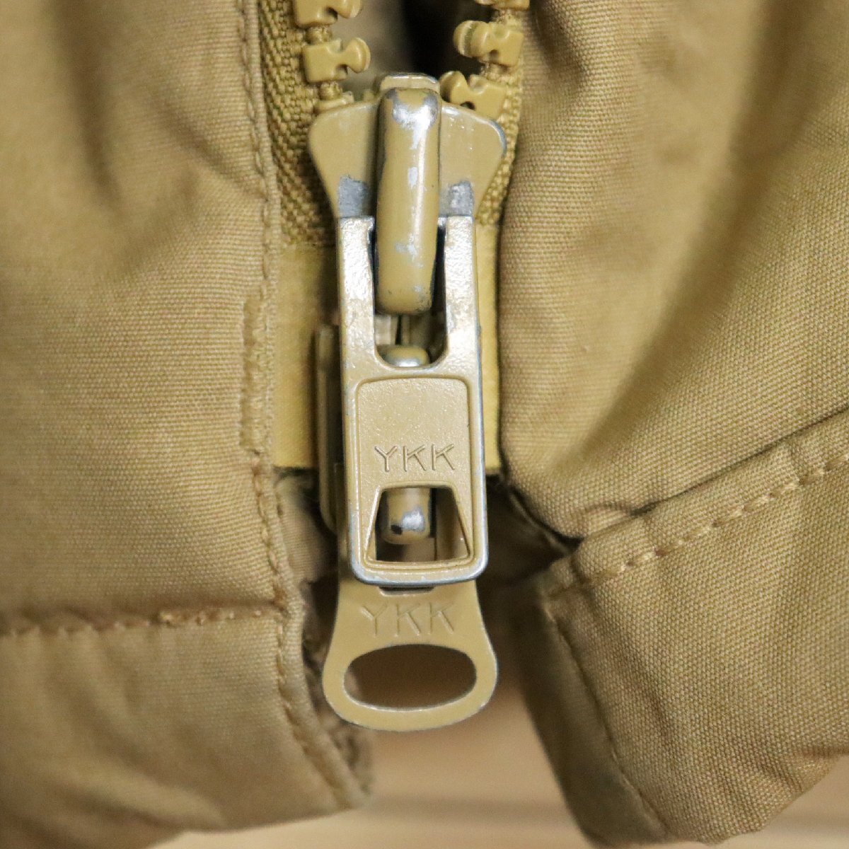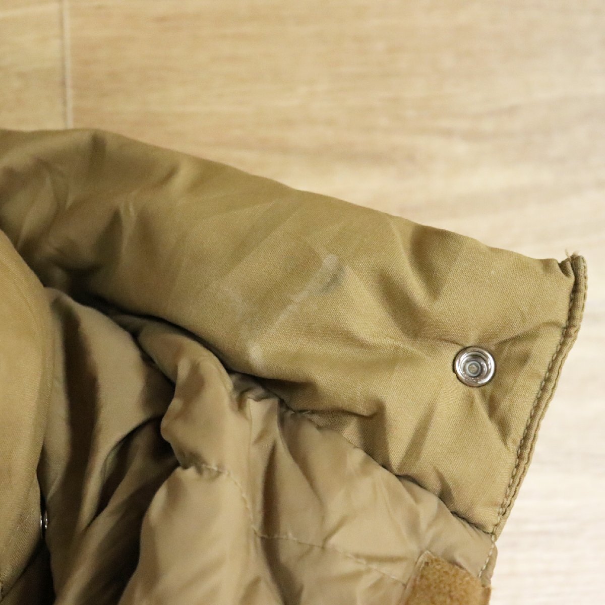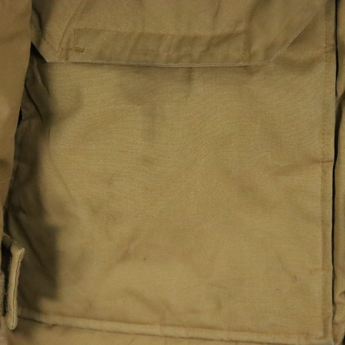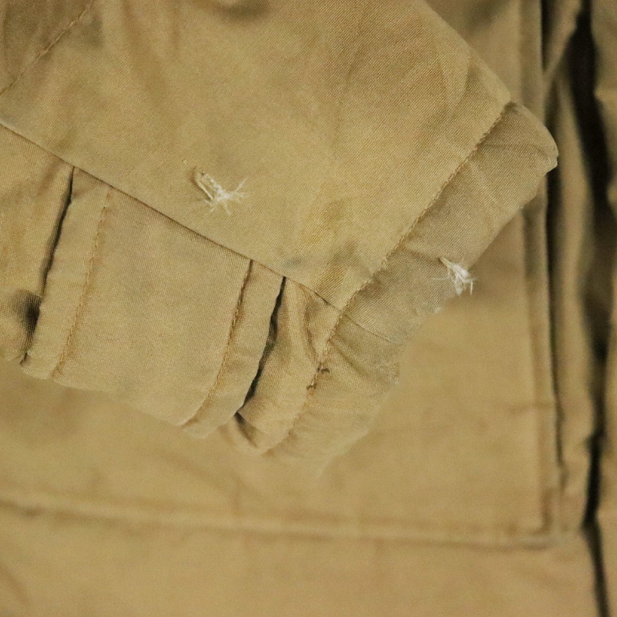 中古品です。使用感があります。右袖先に破れとホツレ、襟と左右ポケット、左肩と袖裏に汚れがあります。