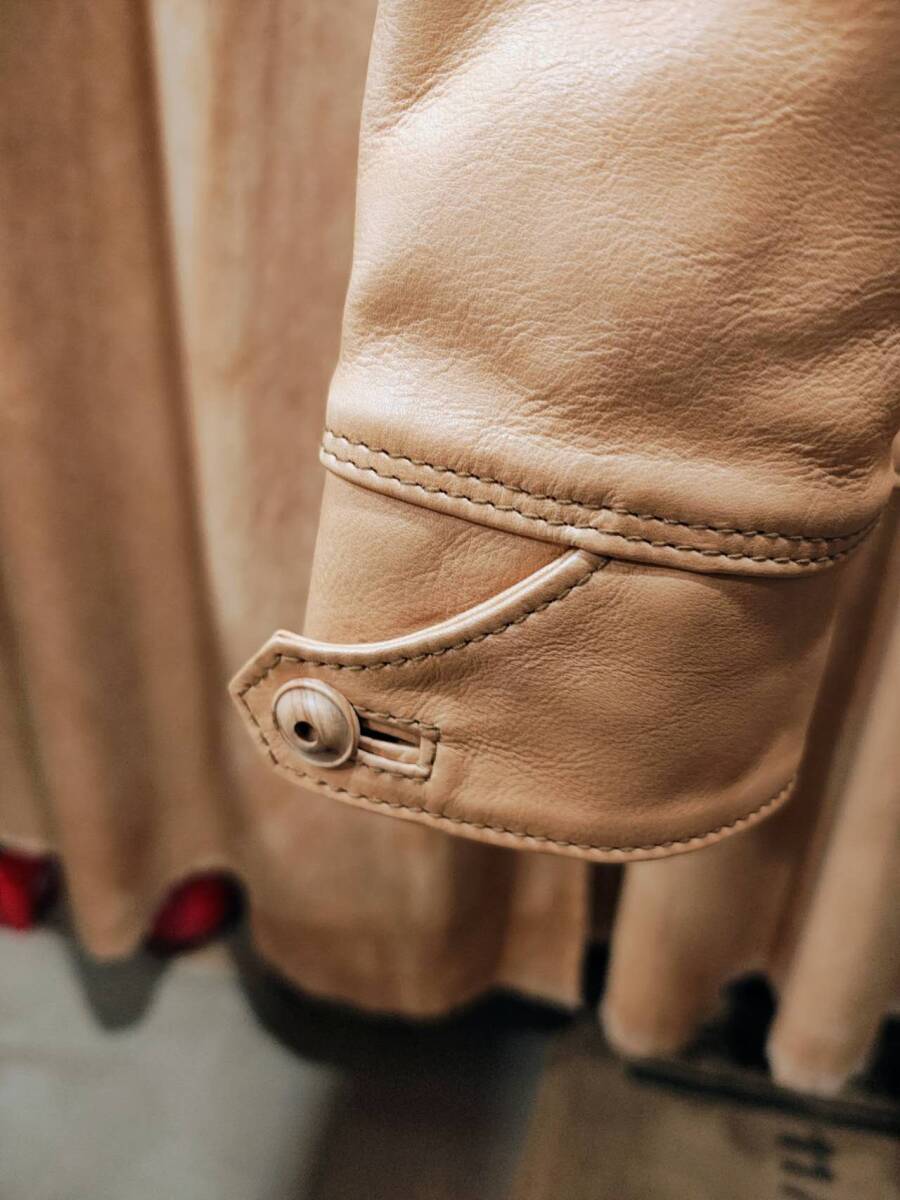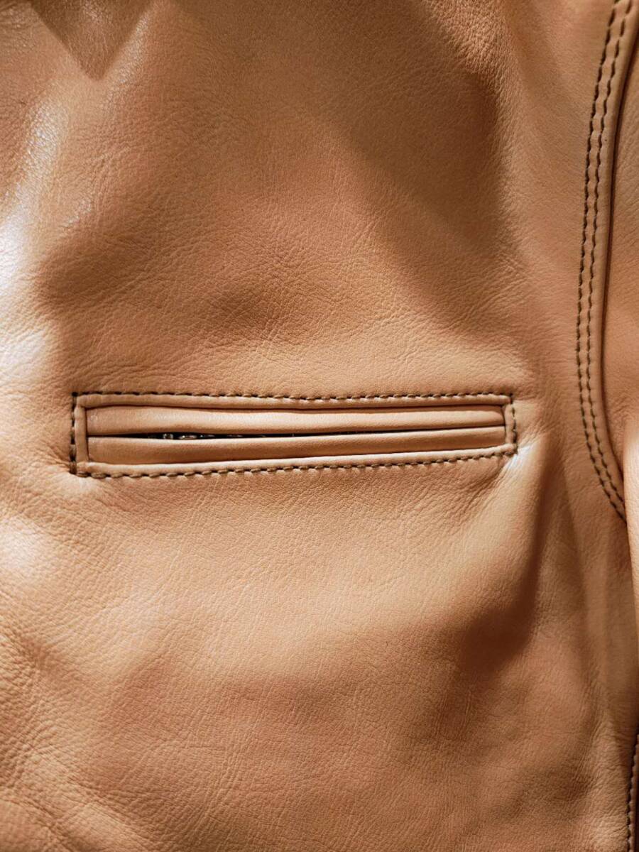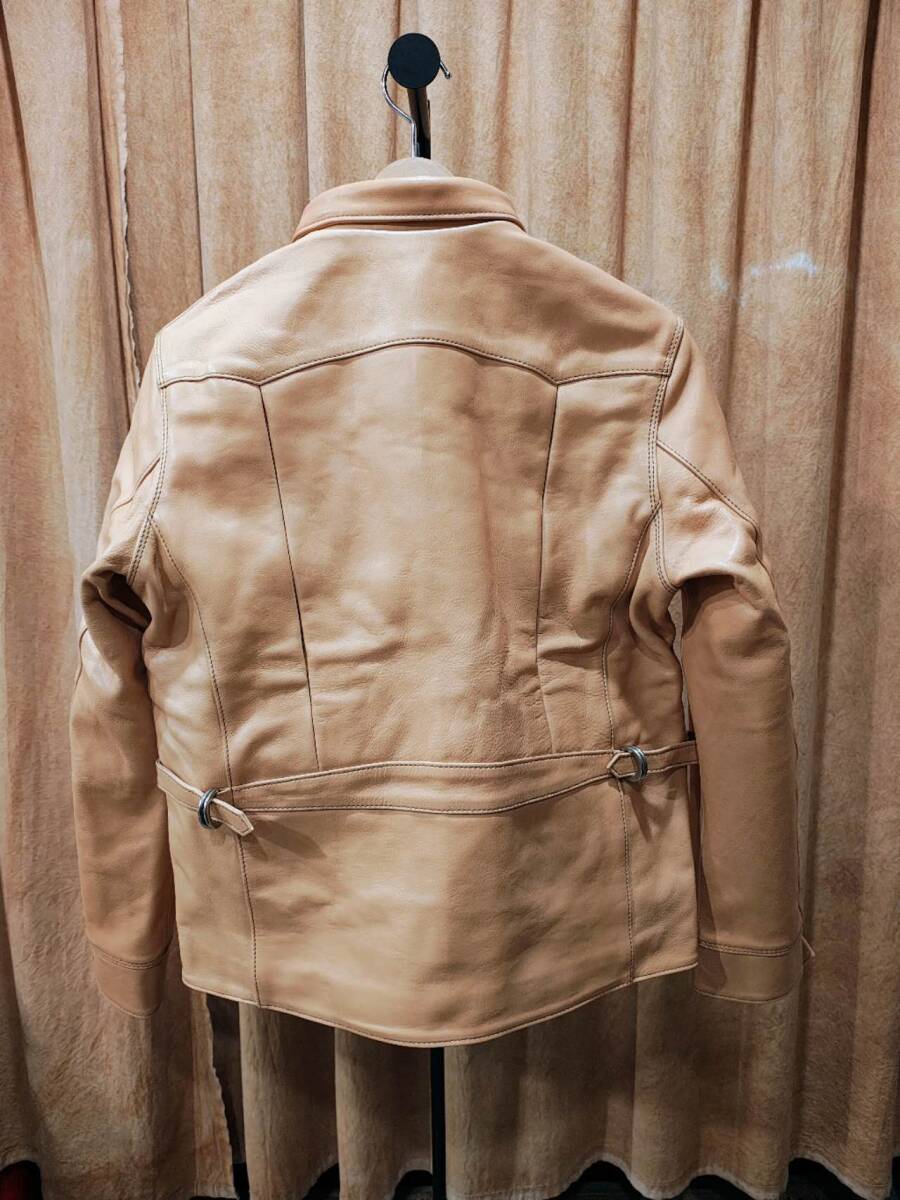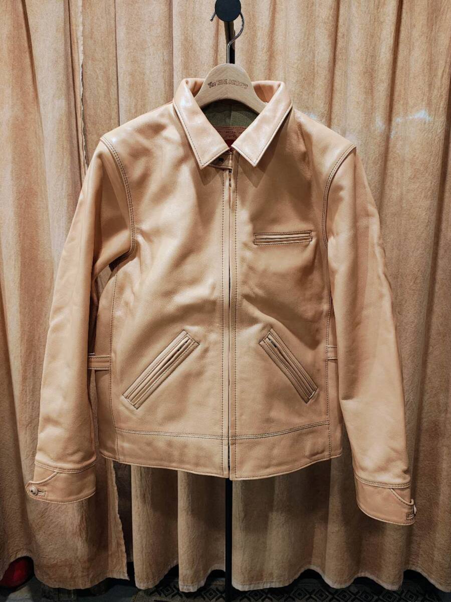 1940年代のスポーツジャケットのヴィンテージスタイルを模して、その素材感も含め着込んでその時間とともにより雰囲気を増す魅力に近づけるべく素材選びから拘り、辿り着いた極上の“オイルドキップレザー”を採用したクラシカルなシングルレザージャケット。 キップレザーとは生後6ヶ月〜2年以内の仔牛の革でその希少さは勿論のこと、キメが細やかで薄くても堅牢であることが特徴。柔らかくしなやかなキップレザーは体馴染みも早く、独自の経年変化も楽しめます。その希少なキップレザーにさらに独自のオイルを加えることで、より柔軟性を加えその堅牢性を増させることに成功しました。 クラシカルスタイルのこのスポーツジャケットと素材感がマッチして、牛革で最大級のヴィンテージ感を演出してくれます。各ディテールにも拘り、ジップはすべてヴィンテージ感溢れるヴィンテージでも見られるWALDES製ジッパーを採用。WALDESジップのクラシカルな形状がレザーとマッチしてさらにジャケットと完成度を引き上げてくれています。 袖のカフスや背中のピンチバックサイドに付けられたブラス製2重バックル、チンストラップ等、細部も抜かりなくヘリテイジなディテールも兼ね備えています。 またバックのサイドにはアクションプリーツが付けられ、こちらはデザイン性はもちろん、運動性や機動性を高めてくれます。 ライニングはコットンファブリックを採用。クラシカルなヘリンボーン柄の肉厚なコットンはレザーとともにその経年変化も楽しみな素材。 こちらはオプションでキルティングのライニングにもカスタム可能です。 ヴィンテージからインスパイヤされたデザイン製やつくりにオールドレザーに引けを取らない極上なオリジナル処方でつくられたオイルドキップレザーとの相性は抜群で時を経てニューヴィンテージへの昇華が期待されるスポーツジャケットです。