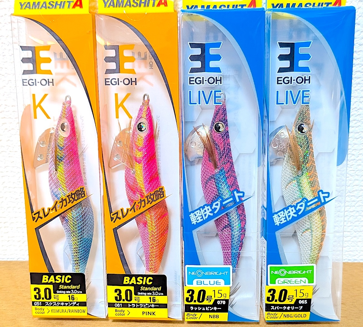 ★ヤマシタ エギ王K 3.0号 4色セット スケスケキャンディ トラトラピンキー ラッシュピンキー スパークオリーブ 3号