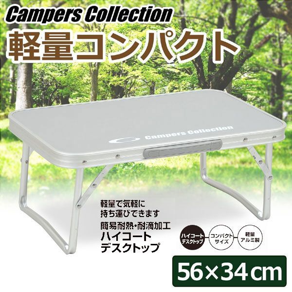 | 内 容 | ■キャンパーズコレクション マスコットテーブル(幅56奥行34) ■品番 YMT-3456 【商品仕様】 サイズ:幅56×奥行34×高さ24cm 重量:1.5kg 原産国:中国 材質:天板=合成樹脂化粧繊維板(ポリエステル)、脚部=アルミ 収納時サイズ:約幅56.5×奥行35×高さ3cm テーブル天板サイズ=幅56×奥行34cm 天板耐荷重:20kg 天板:耐熱約150℃・耐滴加工 ●使い勝手のよい必要なスペックが揃ったスタンダードなテーブルシリーズ。 ●小型・軽量なので気軽に持ち運びできます。 ●専用パーツが本体脚部との隙間を解消し横揺れを軽減。 高い安定性を実現しました。 ※化粧箱に直接伝票貼り付けての発送となります |