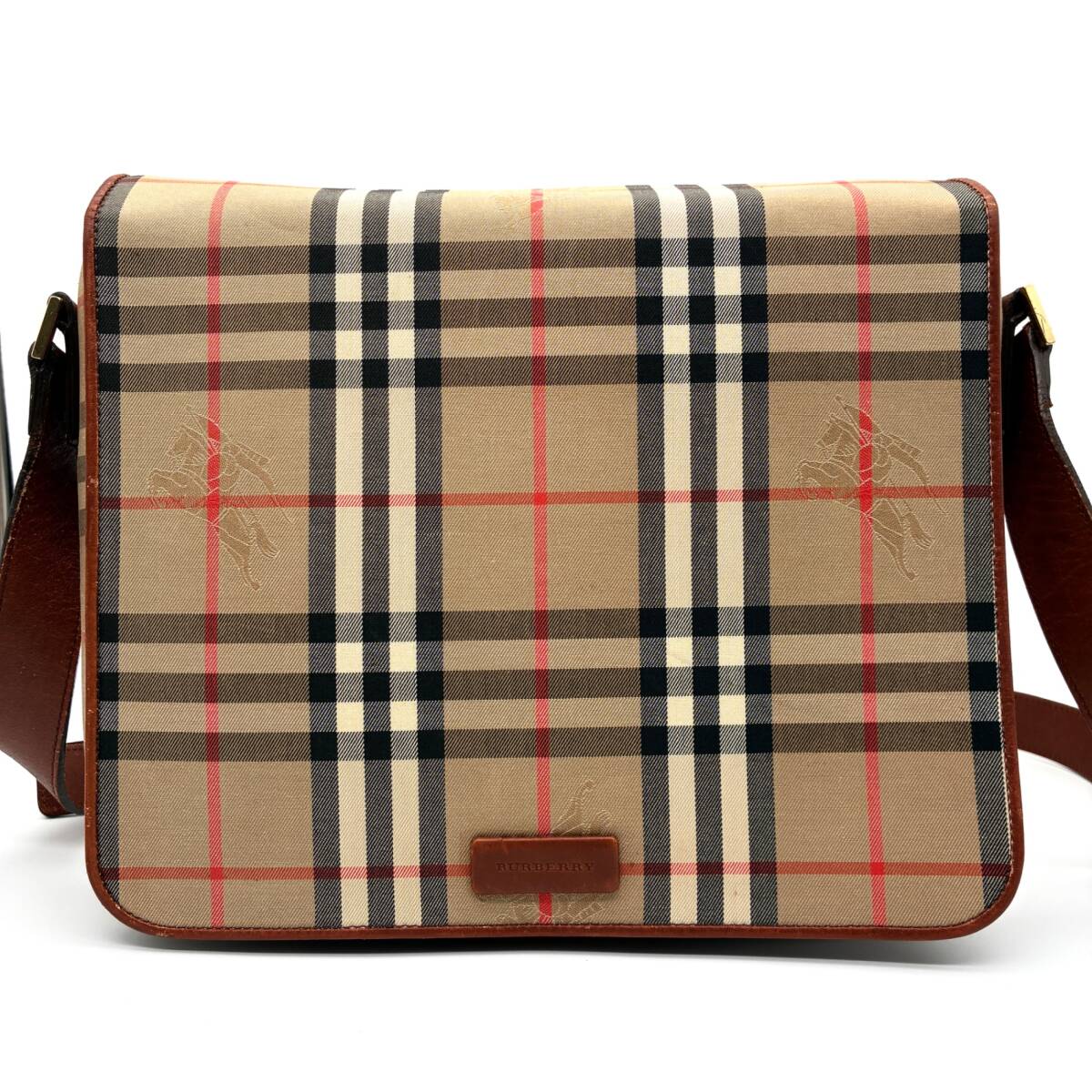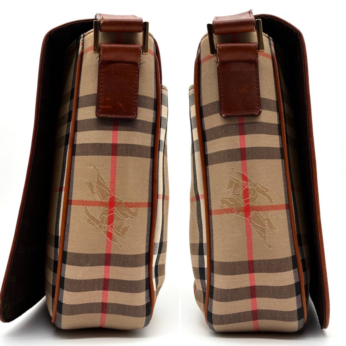 | 詳細 | ブランド名:BURBERRY バーバリー 商品名:ショルダーバッグ サイズ:高さ 約22cm 横幅 約28.5cm 奥行 約7cm ショルダーの長さ 約90〜105cm(調節穴4つ5cm間隔) 型番(シリアル):- 色:ベージュ、ブラウン 素材:ナイロン、レザー 付属品:- 特記事項: | |