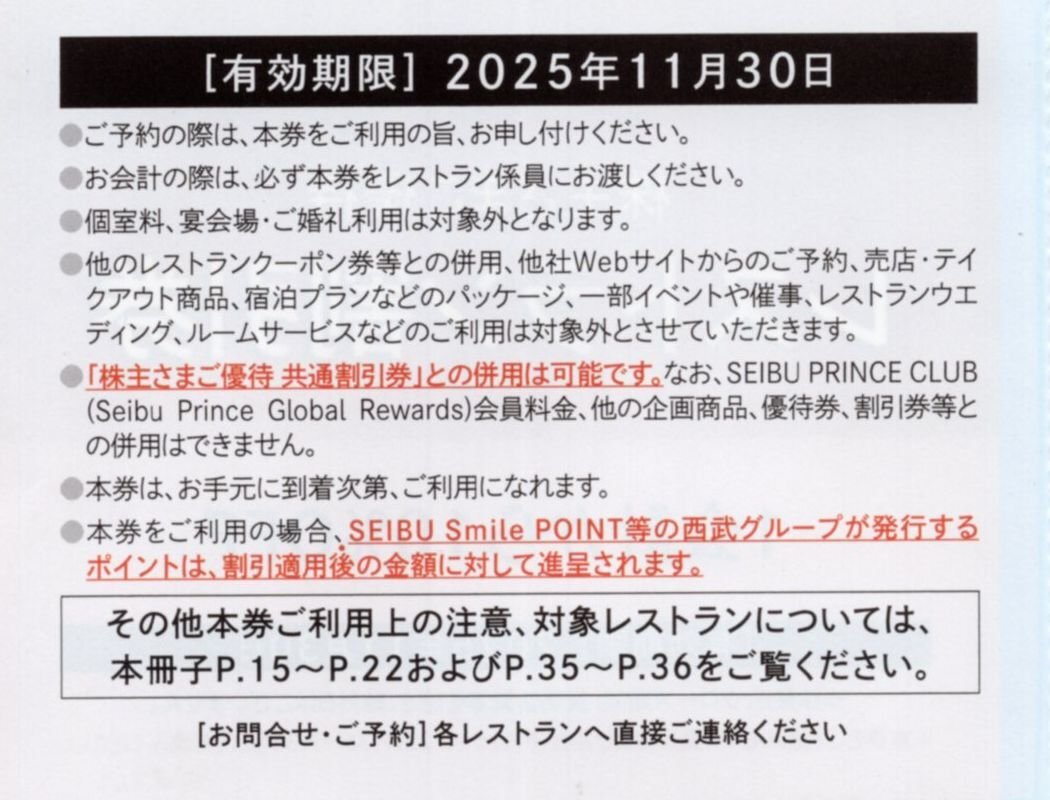 「株主さまご優待 共通割引券」との併用が可能です。なお、SEIBU PRINCE CLUB会員料金、他の企画商品および優待券、割引券等との併用はできません。