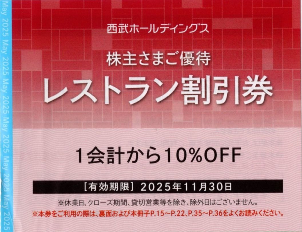 ・西武ホールディングスの株主さまご優待のレストラン10%割引券です。