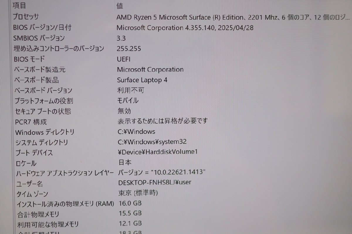 CPU:AMD Ryzen5 Microsoft Surface Edition 2201MHz 6コア12スレ