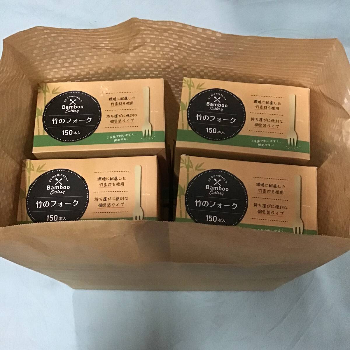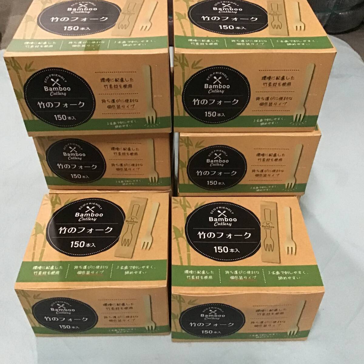 こちらの商品は「竹のフォーク 150本入」という使い捨てカトラリー製品、8箱セットです。