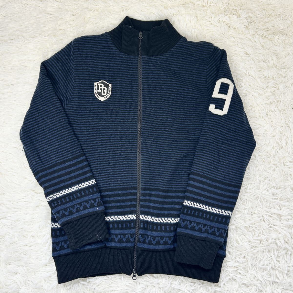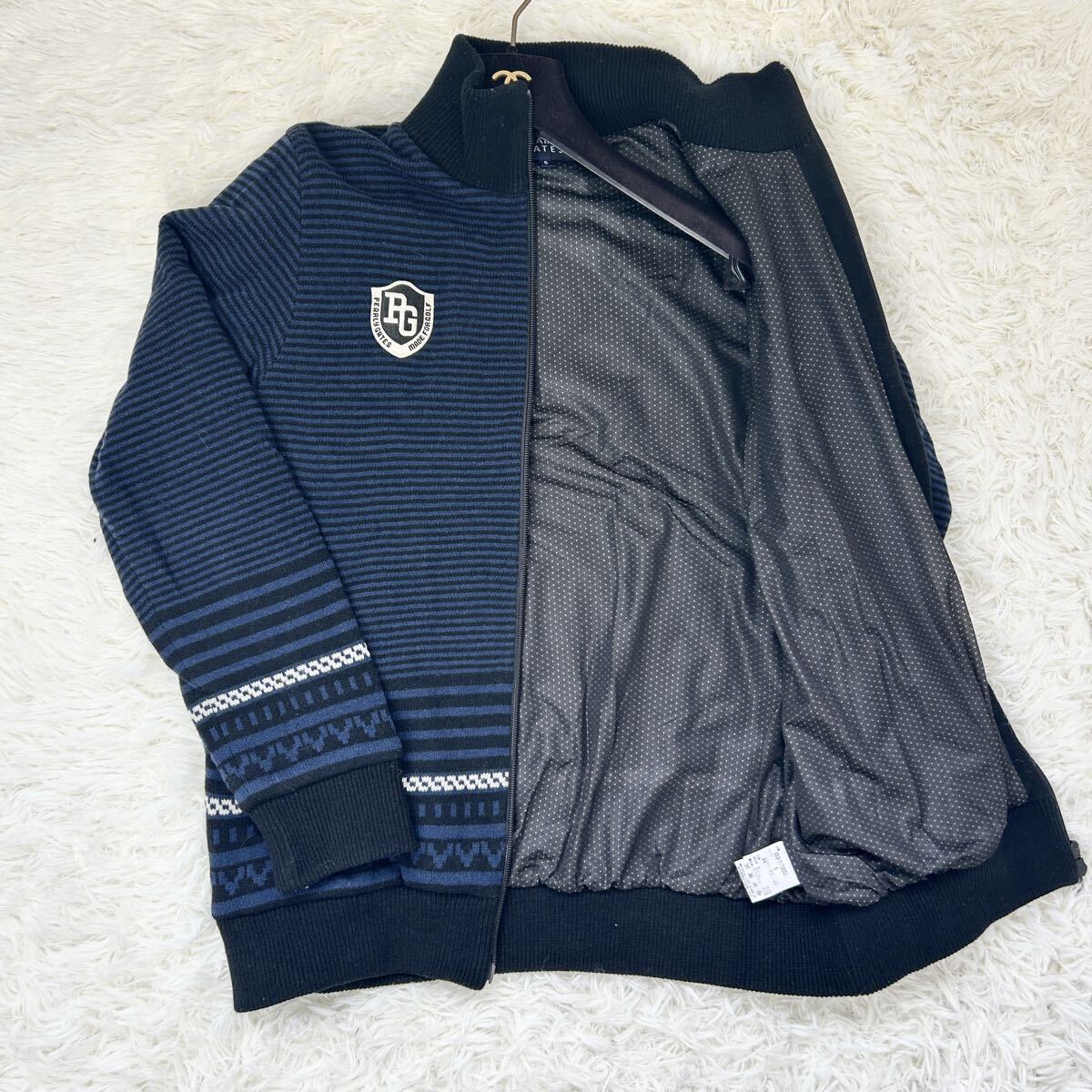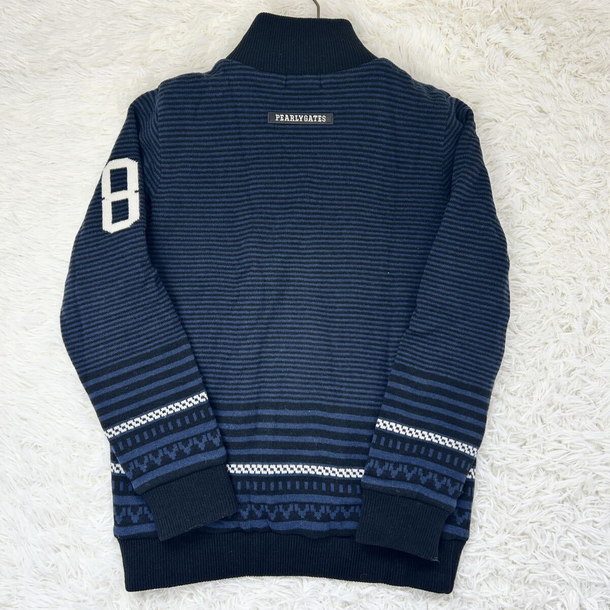 極美品●PEARLY GATES パーリーゲイツ ゴルフ ウェア メンズ ダブルジップ ブルゾン ニット ジャケット セーター アイボリー サイズ5