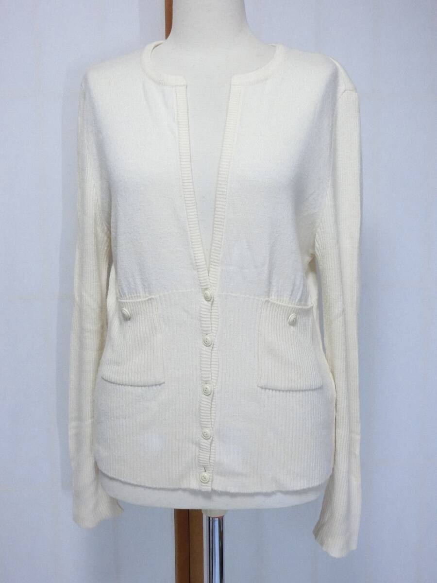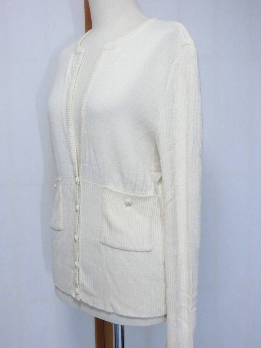 ★miss ashida ミス アシダ オフホワイトで袖と裾がリブ織りになった長袖カーディガン M★
