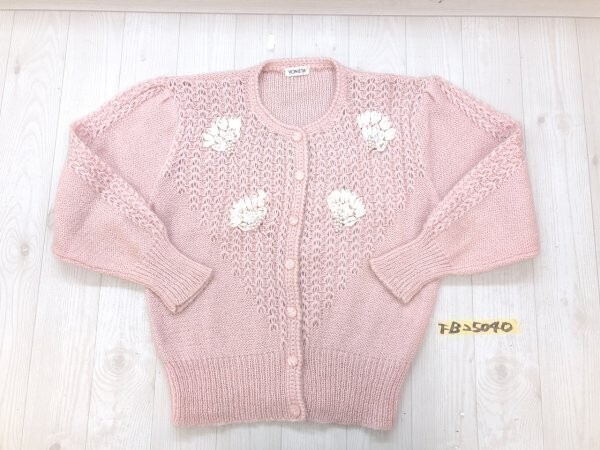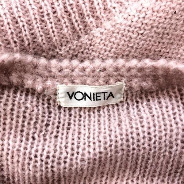 VONIETA レディース 毛アクリル ビジュー ニットカーディガン ピンク です。