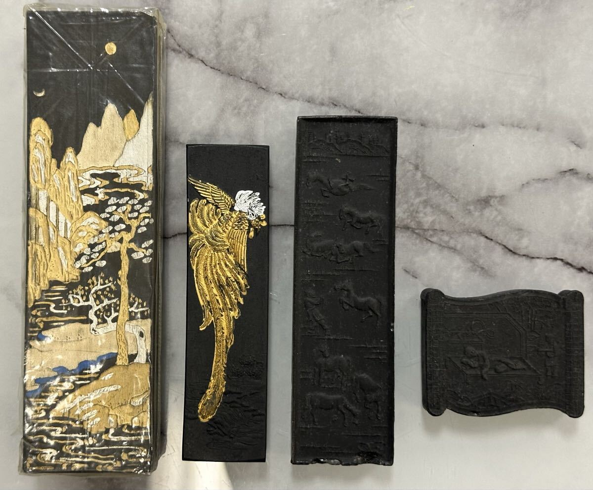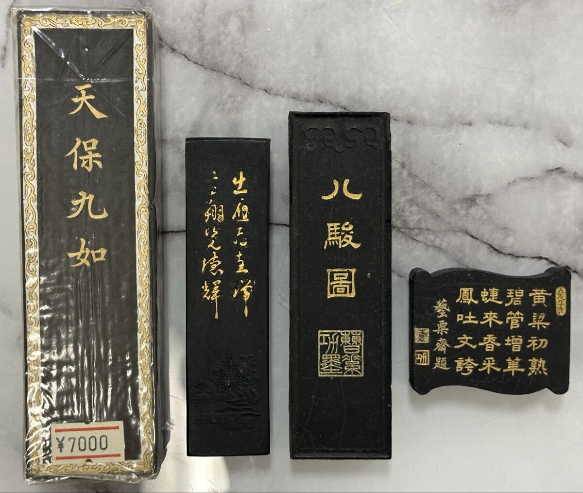 管理番号S388 未使用 中国古墨 天保九如/八駿圖 書道具 墨