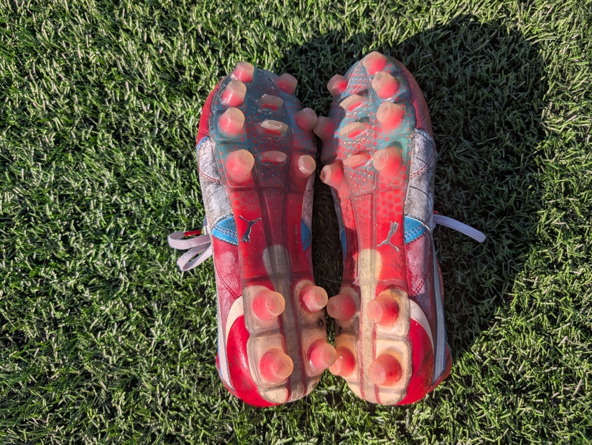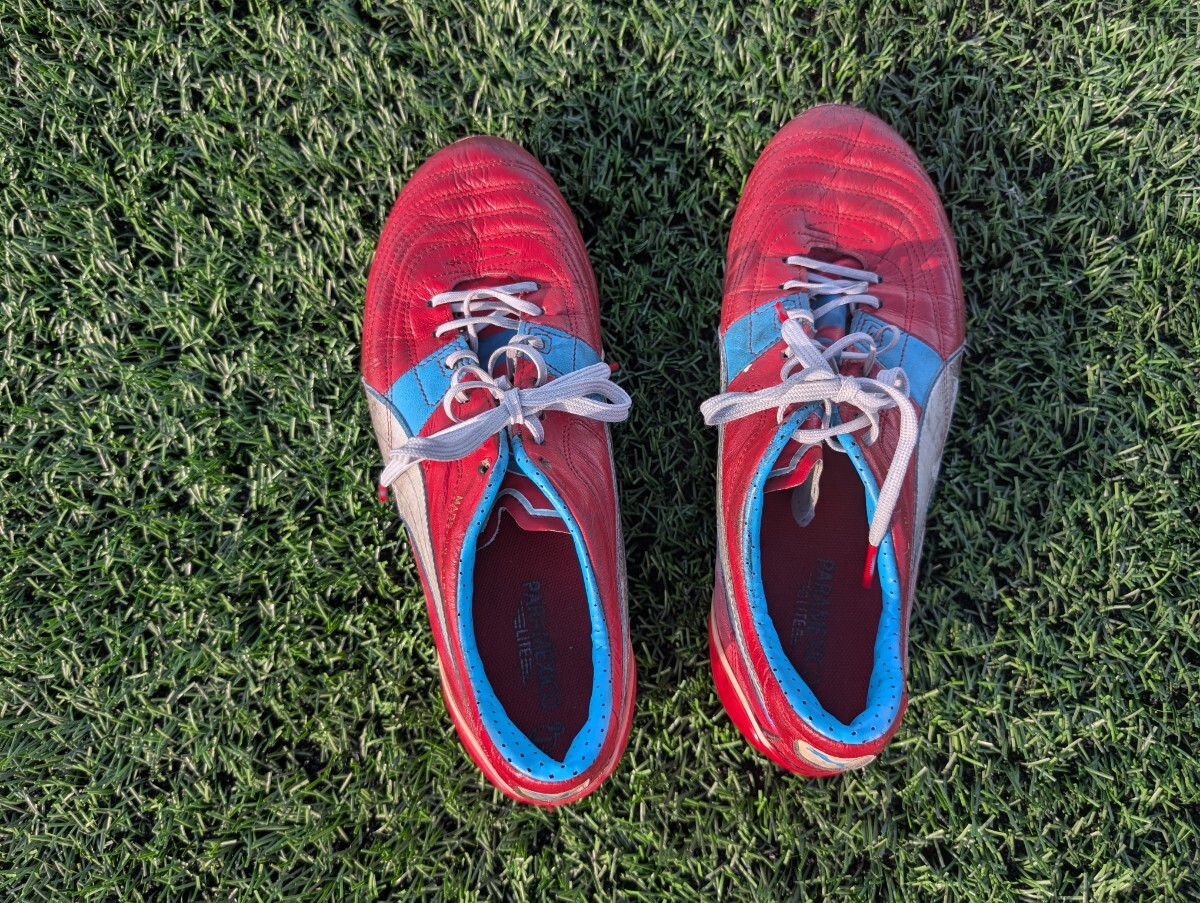 | 商品説明 | プーマ製のサッカースパイクパラメヒコの出品です。 カラーは、レッド×サックス×ホワイトです。 サイズは26.0cmです。 元日本代表の森岡隆三選手からいただいたスパイクです。 森岡隆三選手は、1999年に鹿島アントラーズに入団され、その後、清水エスパルス、京都サンガで活躍されました。 1999年から2003年には、日本代表メンバーでした。 |