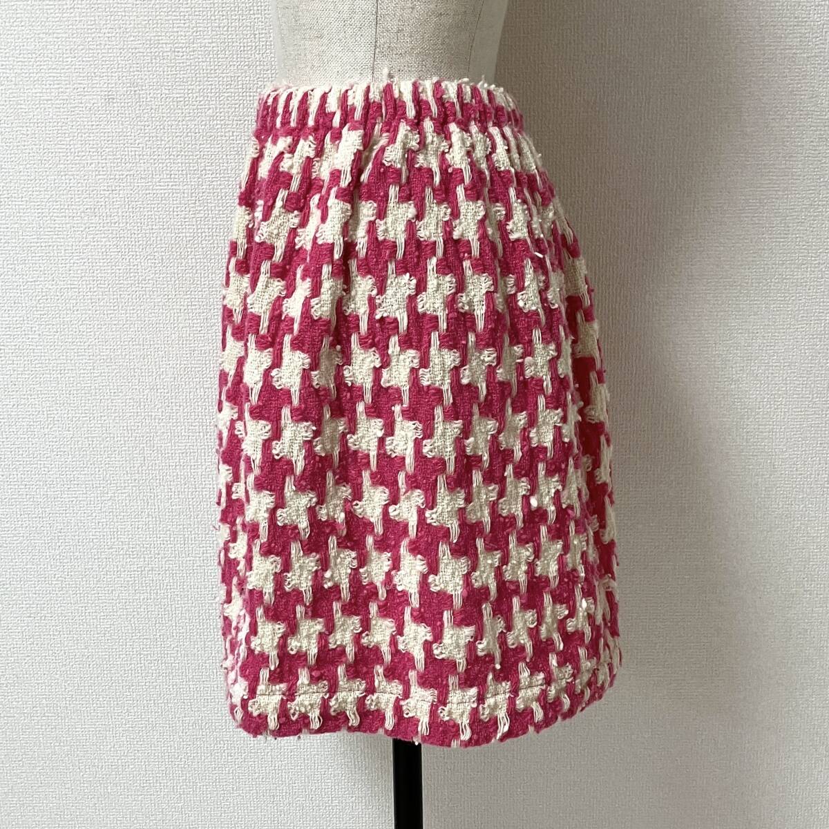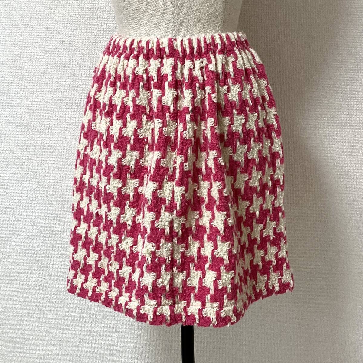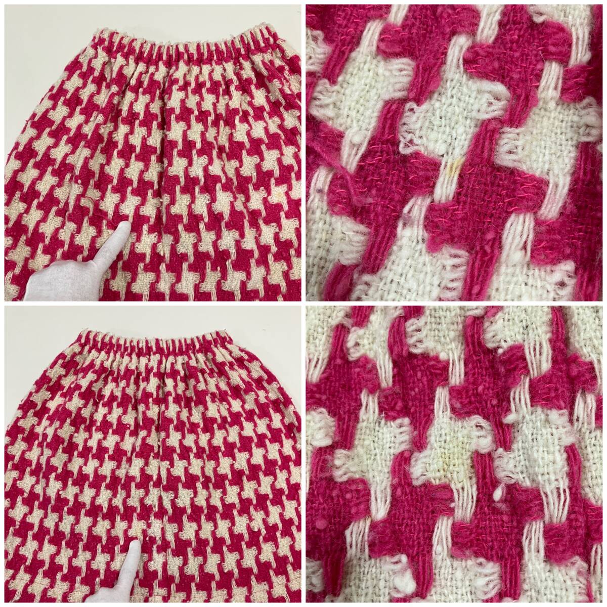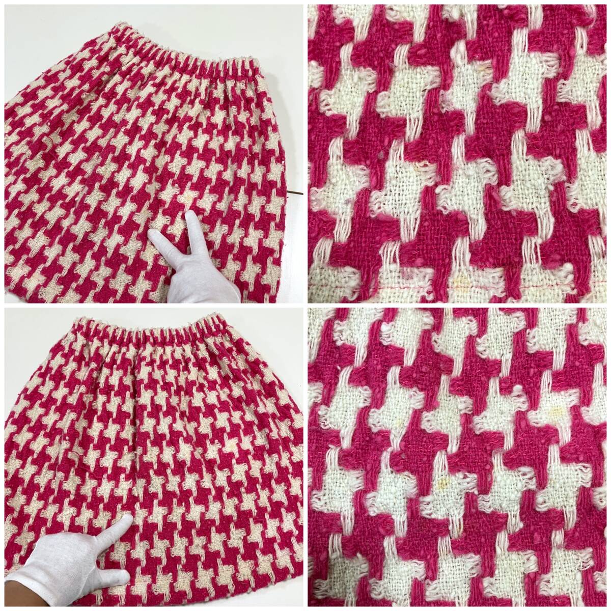 AD1991 COMME des GARCONS ツイード ウール タイト ミニ スカート 千鳥格子 ピンク Sサイズ コムデギャルソン 90s VINTAGE archive 5050589