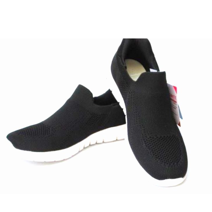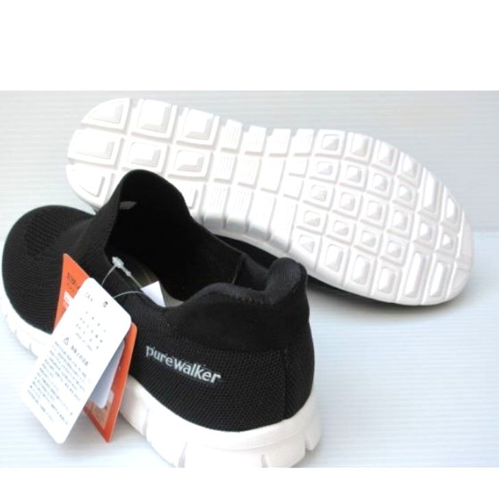 ハンズフリー 秒で履けるスリッポン 24.0 ピュアウォーカー PW1502 黒 婦人 レディース スニーカー ウォーキングシューズ 施設 介護 履き