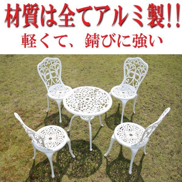 | 商品名 | 送料無料◆アルミ鋳物ガーデン5点セット ◆軽量で持ち運び簡単!! ガーデンテーブル5点セット ガーデンファニチャー ガーデンテーブルセット ガーデンチェア アルミ アルミテーブル ガーデンテーブル アルミチェア キャンプチェア アウトドア 鋳物■WH ホワイト |