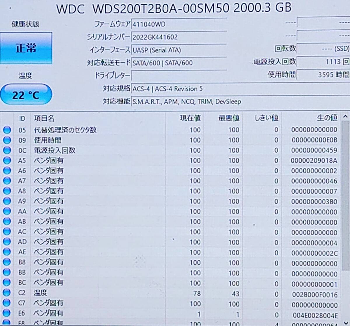 データの消去後、crystal disk Infoにてを確認しております