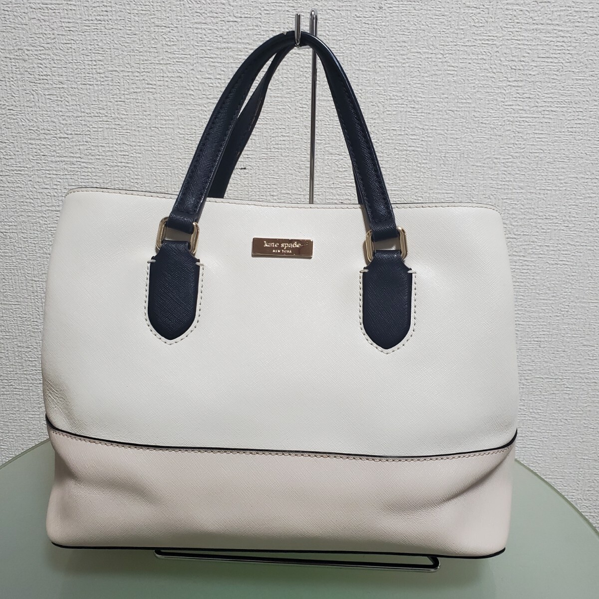 kate spade ケイトスペード レザーバッグ ハンドバッグ バイカラー 配色カラー ベージュ ホワイト 激カワ