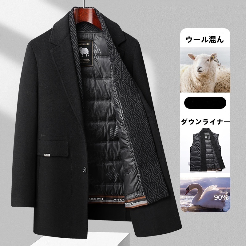 チェスターコート ダウンコート ウールコート メンズ★新品 ダウンライナー スカーフの襟 ビジネスコートアウター【DY9205】グレー 2XL