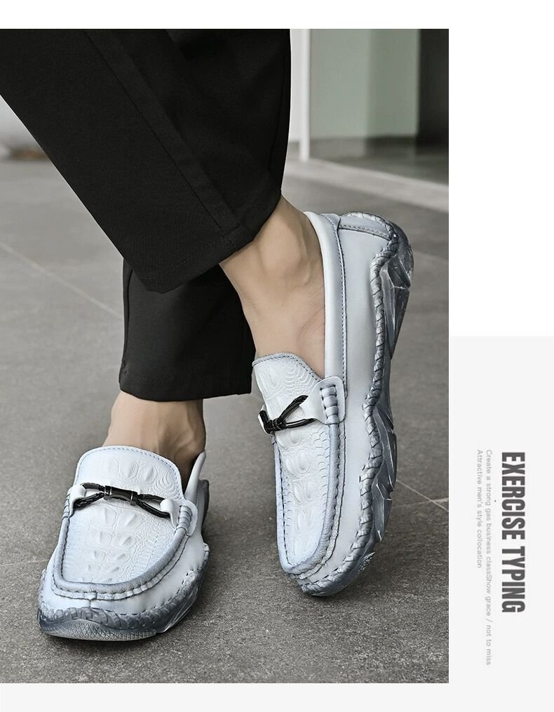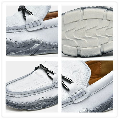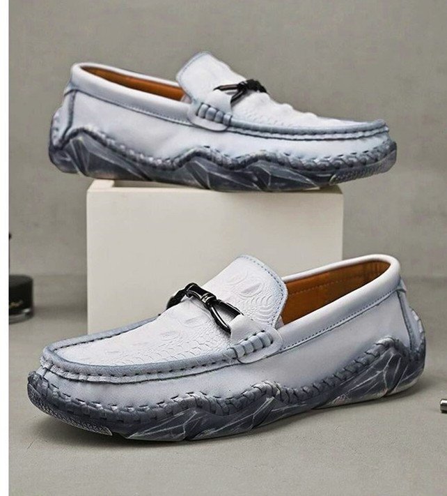 XX-22085 43/白灰/38-46選 英国風レ超軽量 牛革 ドライビングシューズ メンズ 鰐柄 手作り スリッポン ローファー レザーシューズ 紳士靴