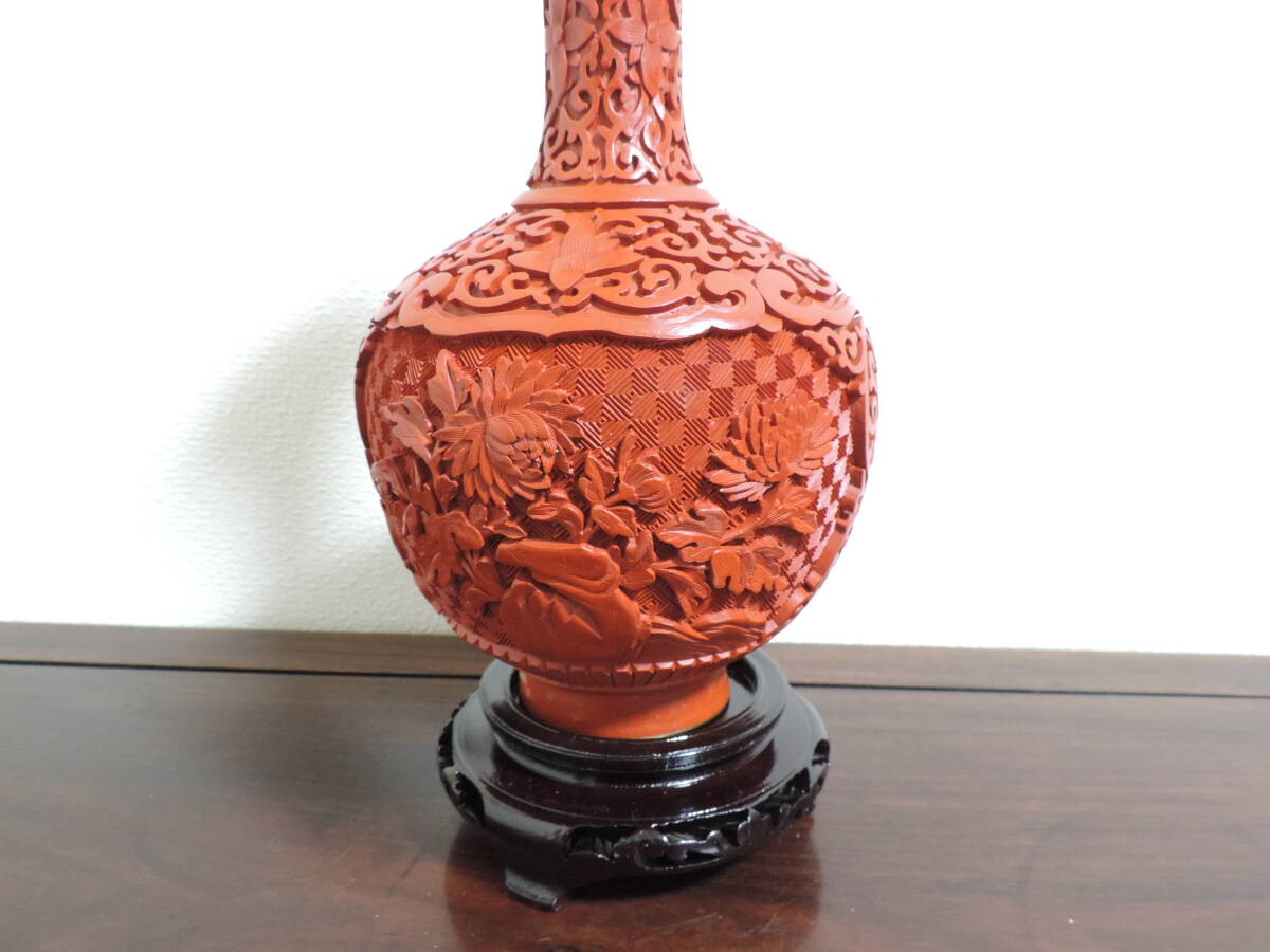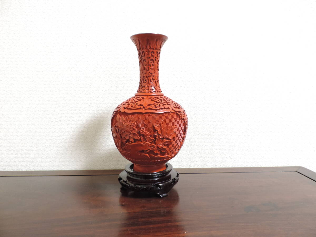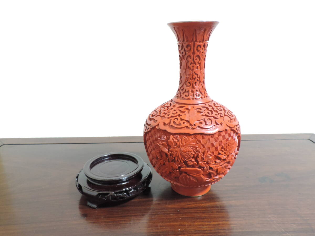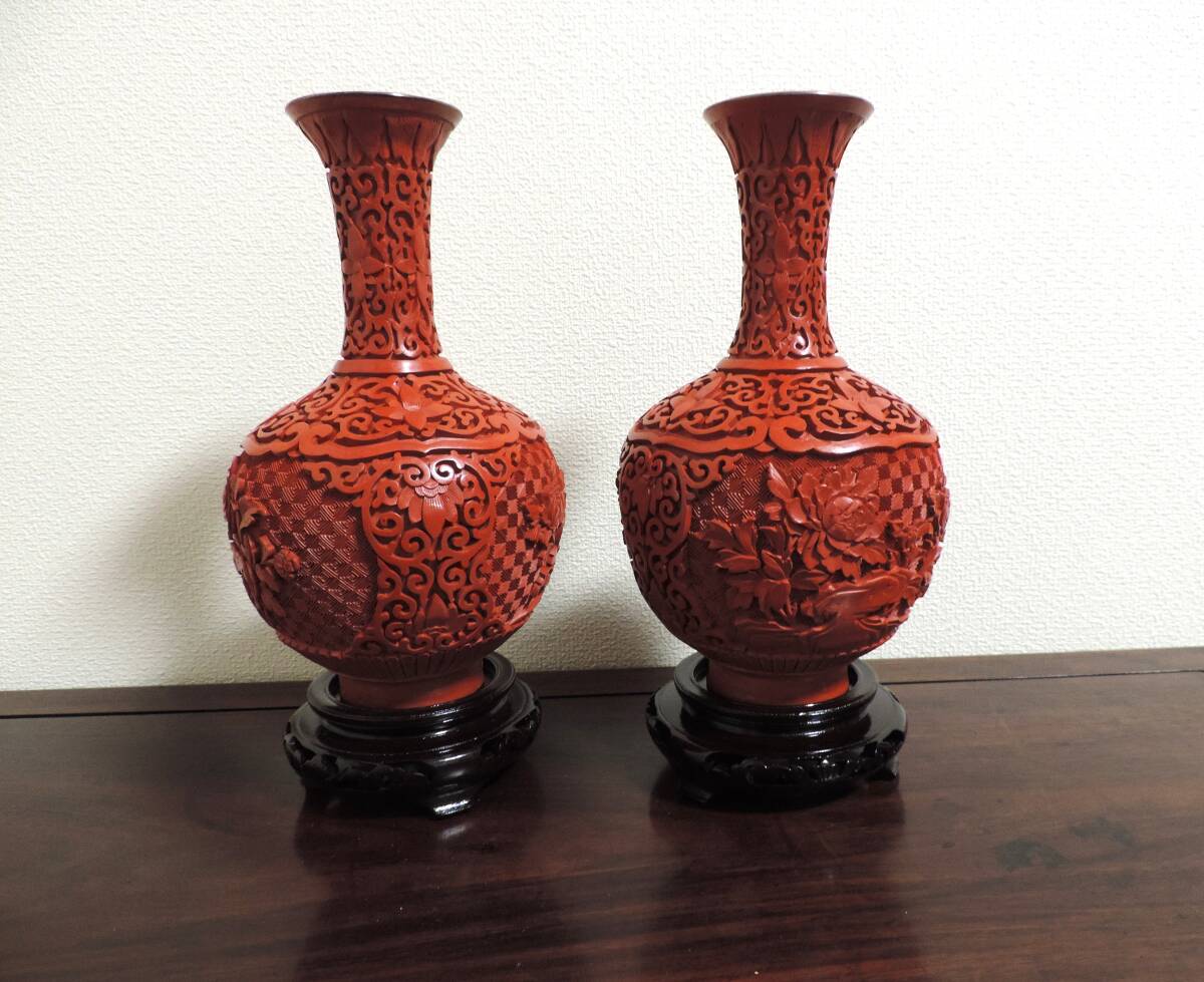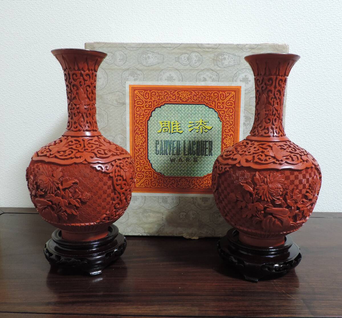 ◆商品名 ⑧堆朱 台付き 花入れ 一対 ◆サイズ 花瓶 高さ:23.4㎝ 口径:6.5㎝ 胴径14.5㎝ 台 高さ:4.5㎝ 直径:10.5㎝ ◆商品状態・詳細 ・綺麗な状態です(写真参照) ・使用感はございません。 ・中国の古い物です(50年ほど前) |