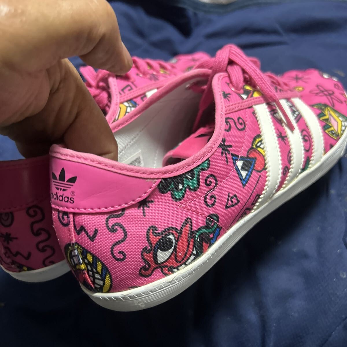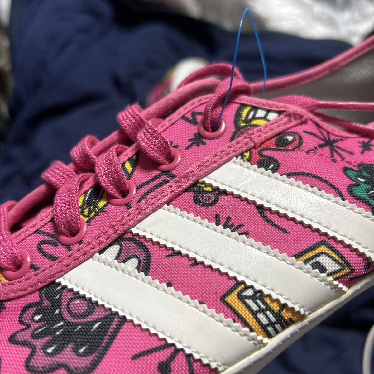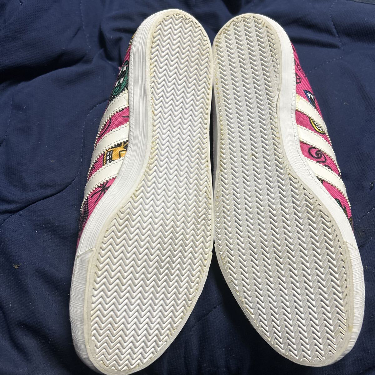 独創的なアイディアで人々を楽しませくれる"ジェレミー スコット(JEREMY SCOT)"と"アディダス オリジナルス(ADIDAS ORIGINALS)"のコラボレーションライン。今作はニューヨークで活躍するアーティストの"ケニー・シャーフ(KENNY SCHARF)"のグラフィックを使ったスニーカーとなる。アッパーはピンクのキャンバス地で包み込み、サイドのスリーストライプスは白のレザーを採用。グリップ力の高いラバー製のアウトソールも同じく白でまとめてクリーンに仕上げている。発色のよいピンクと"ケニー・シャーフ"のグラフィックが見事にマッチングした一足となっている。