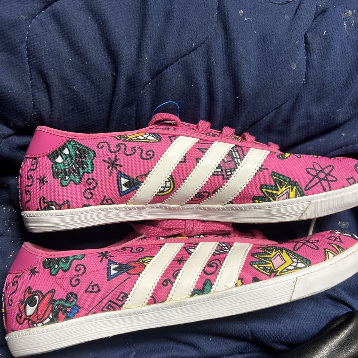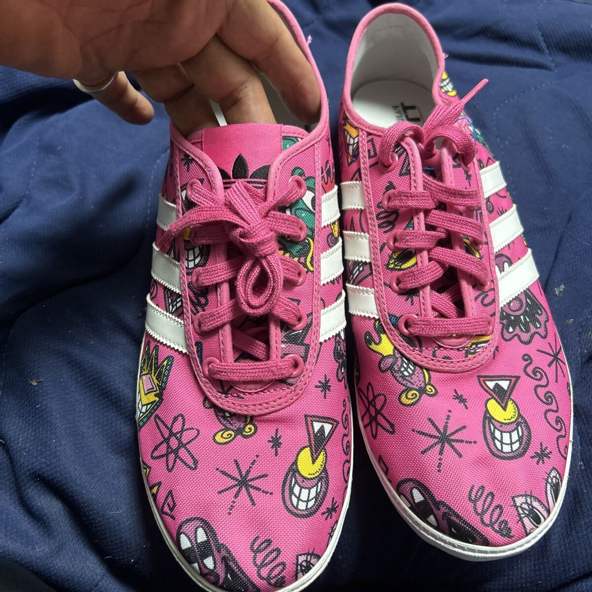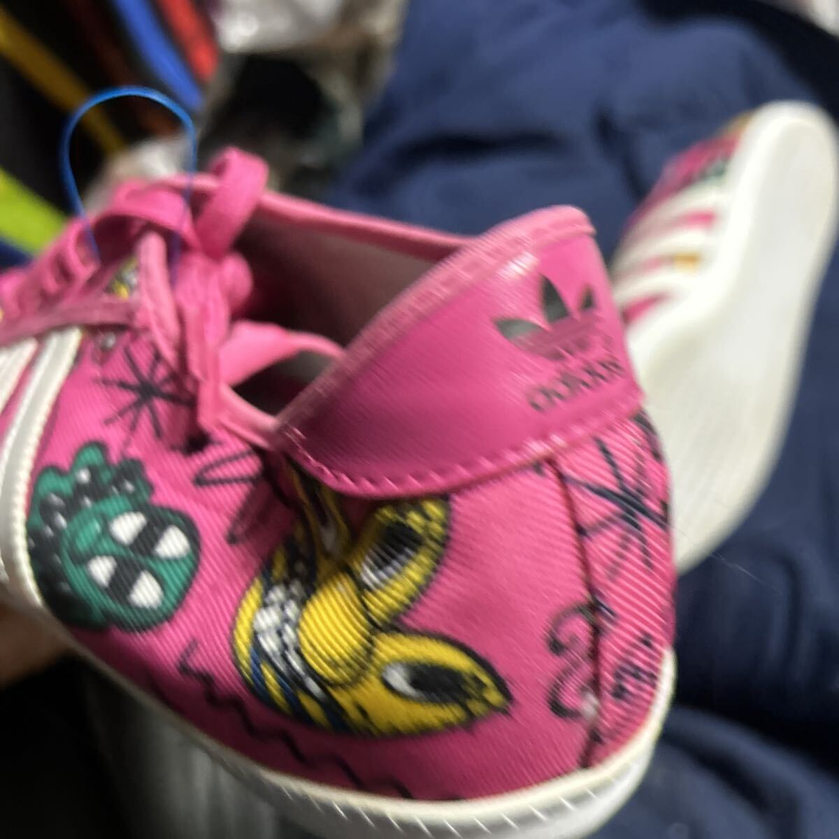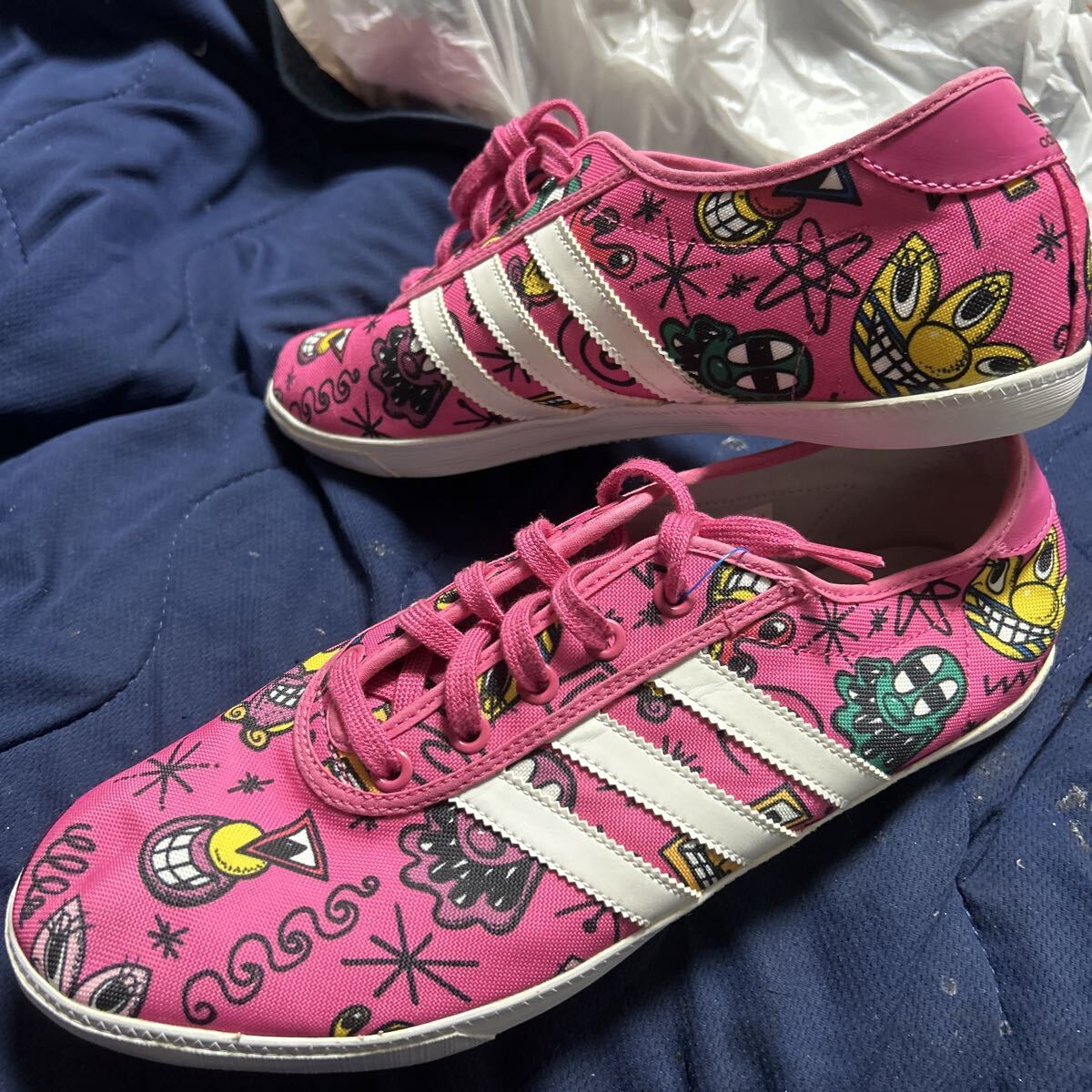 独創的なアイディアで人々を楽しませくれる"ジェレミー スコット(JEREMY SCOT)"と"アディダス オリジナルス(ADIDAS ORIGINALS)"のコラボレーションライン。今作はニューヨークで活躍するアーティストの"ケニー・シャーフ(KENNY SCHARF)"のグラフィックを使ったスニーカーとなる。アッパーはピンクのキャンバス地で包み込み、サイドのスリーストライプスは白のレザーを採用。グリップ力の高いラバー製のアウトソールも同じく白でまとめてクリーンに仕上げている。発色のよいピンクと"ケニー・シャーフ"のグラフィックが見事にマッチングした一足となっている。