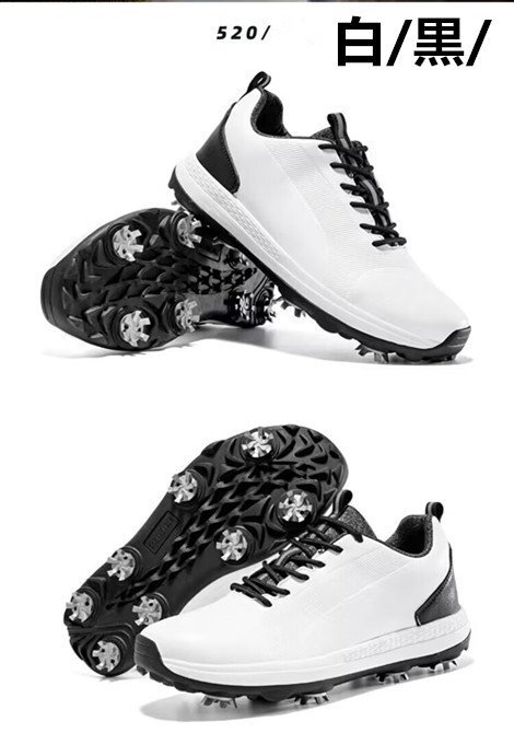 GRF-D520白/40#絶賛39-47選 弾力性防滑 耐磨 通気ゴルフシューズ4E運動靴 スパイクレス メンズ スポーツシューズ 強いグリップ フィット
