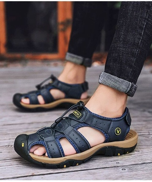 LX-92362 42/紺 38-47選 安い 牛革 軽量 夏 滑り止め 快適 通気性 サンダル メンズ スポーツ ビーチサンダル スリッパ アウトドア