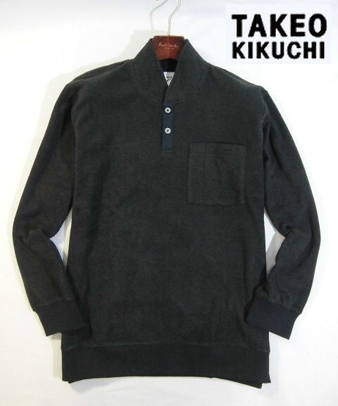 K日11400新品▼ タケオキクチ 【 M 】 チャコールグレー系 フリース 長袖ハイネックシャツ トレーナー 裏起毛 ハイネックフリース