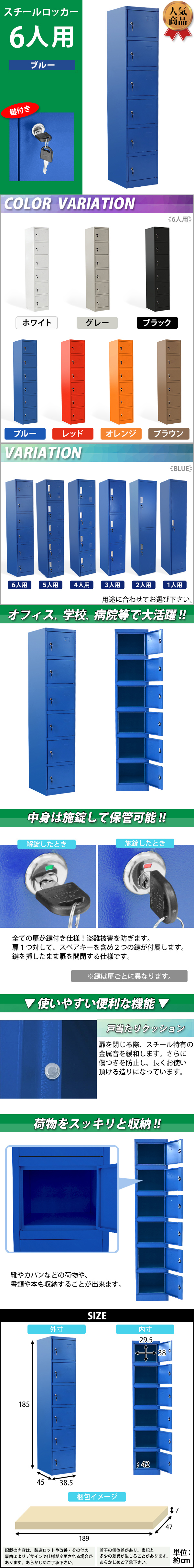 | 商品名 | 送料無料 ロッカー おしゃれ スチールロッカー 6人用 ブルー 鍵付き スペアキー付 1列6段 スチール製 収納 オフィス 事務所 会社 店舗 業務用 更衣室 オフィスロッカー スチールキャビネット 隙間家具 スリム かぎ付き 更衣ロッカー 六人用 6枚扉 シリンダー錠 青 sy206sdrbl |