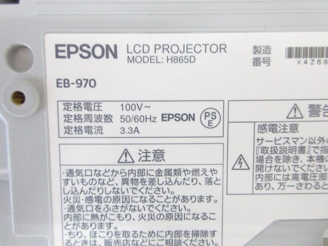 EPSON◎プロジェクター◎4000lm◎EB-970◎プロジェクター時間 52H/13H◎外ケース・DVD-ROM・リモコン・D-subコード付き◎日焼け K5213
