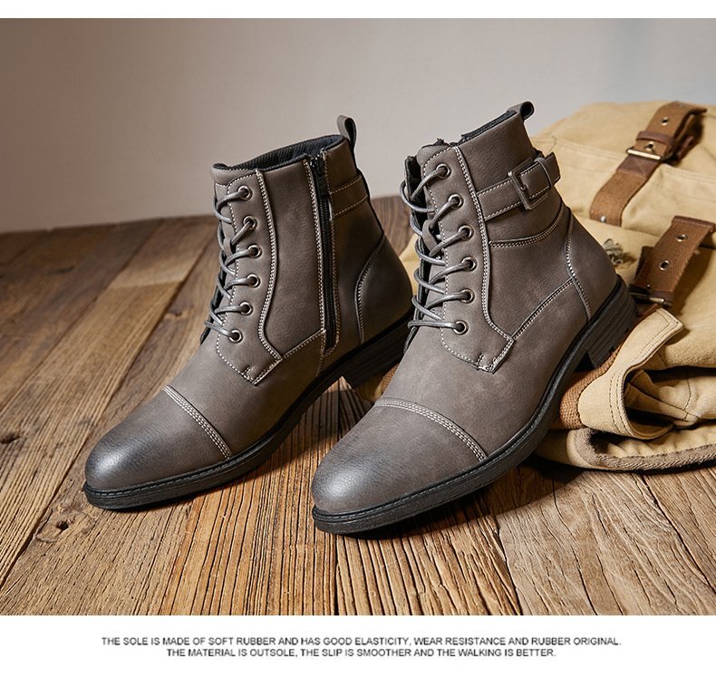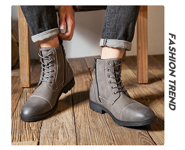XX-HW- 2208W 灰 40サイズ25.cm程度【新品未使用】新型の英国紳士マーチンブーツ滑り止めレトロ系ハイカットラウンドブーツ