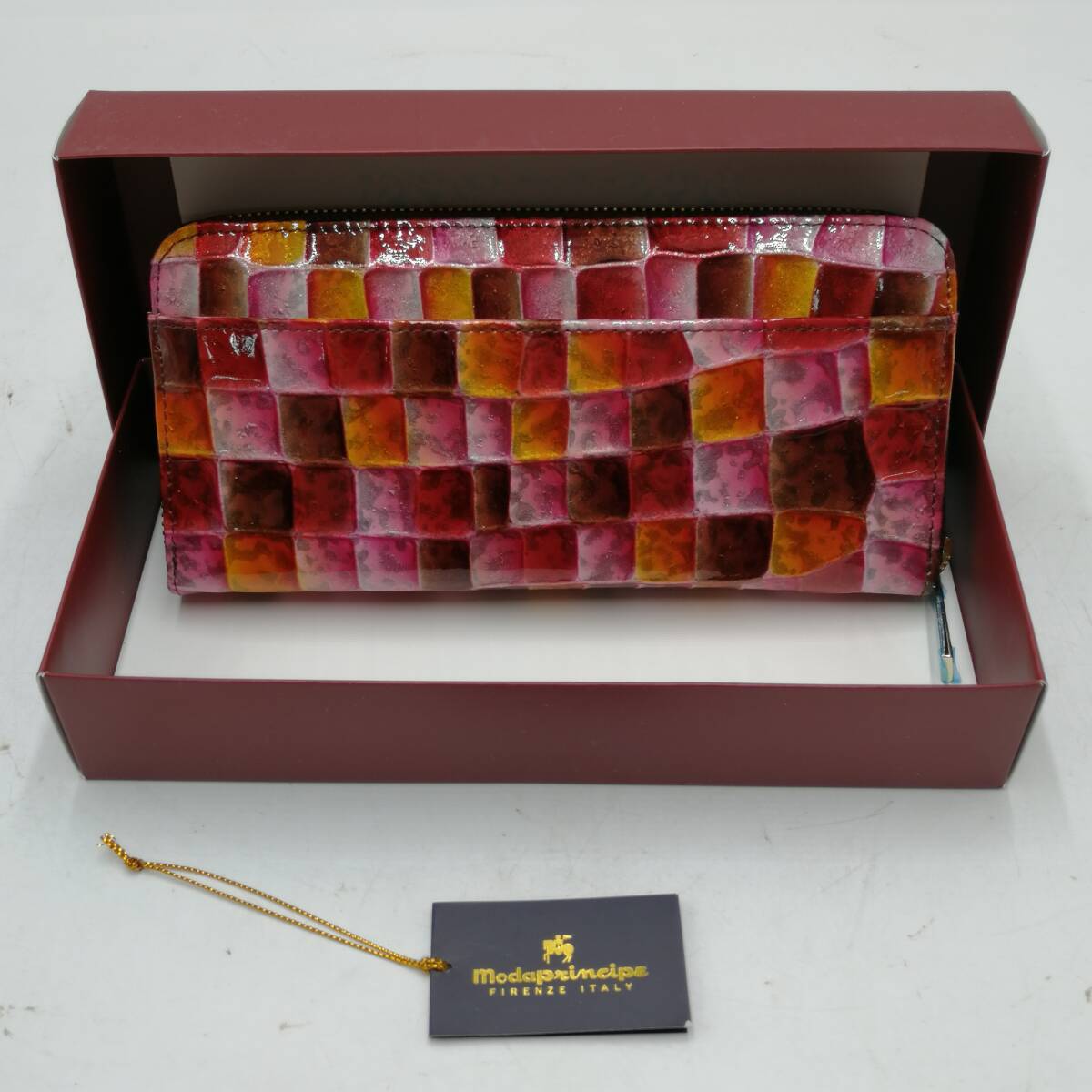 y3780 新品未使用 モーダプリンチペ modaprincipe 長財布 - エナメル(レザー) レッド×ピンク×マルチ ラウンドファスナー 型押し加工 | |||