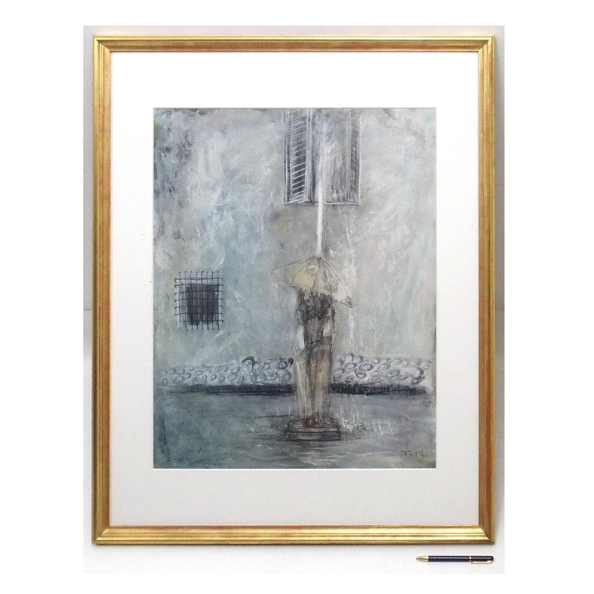「海辺の噴水(ビーゴ)」戸田圭介による直筆サイン入りのパステル15号で、額裏に兜屋画廊のシールがございます。