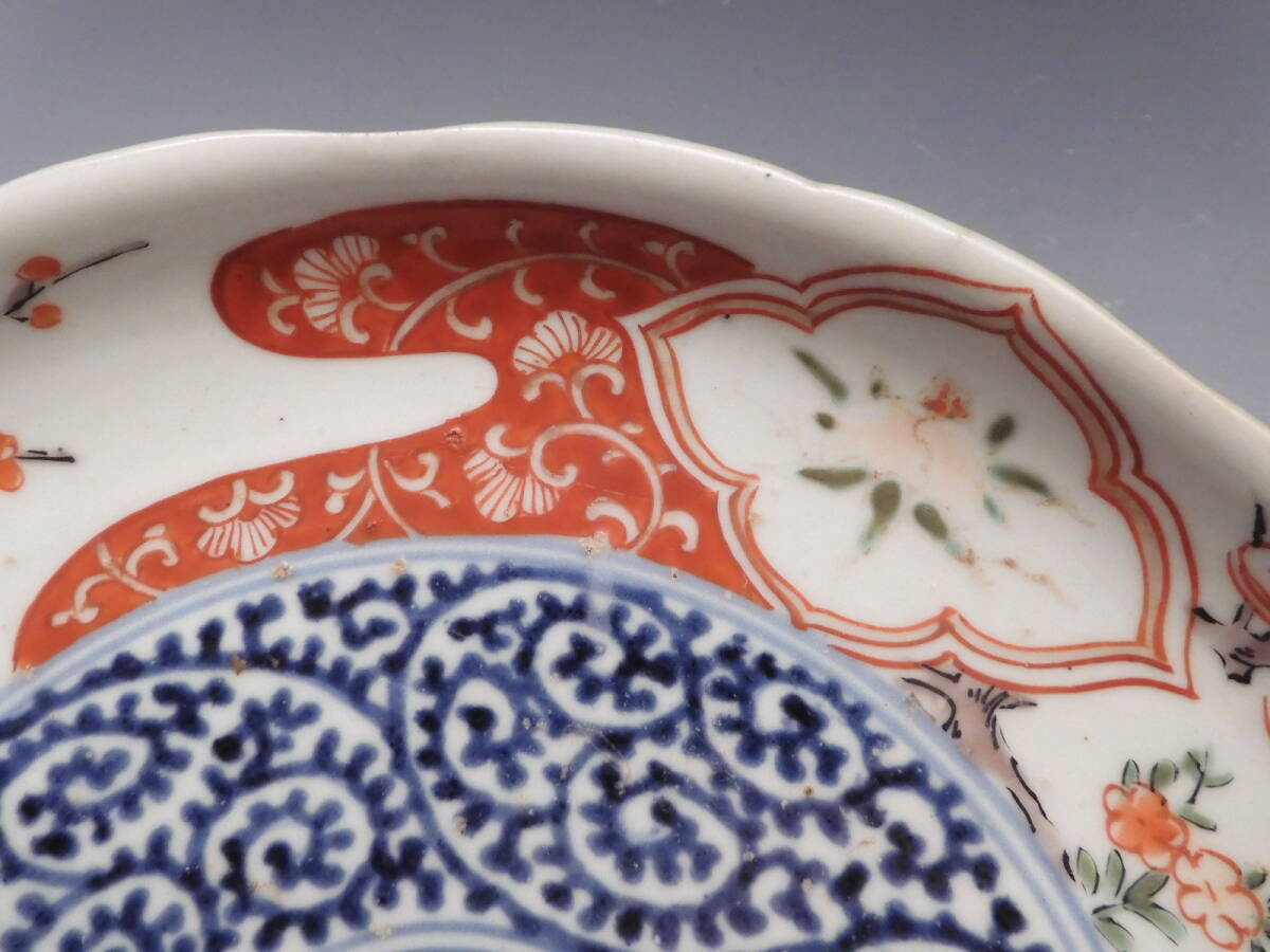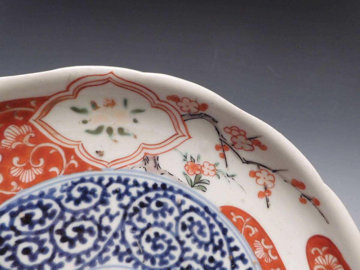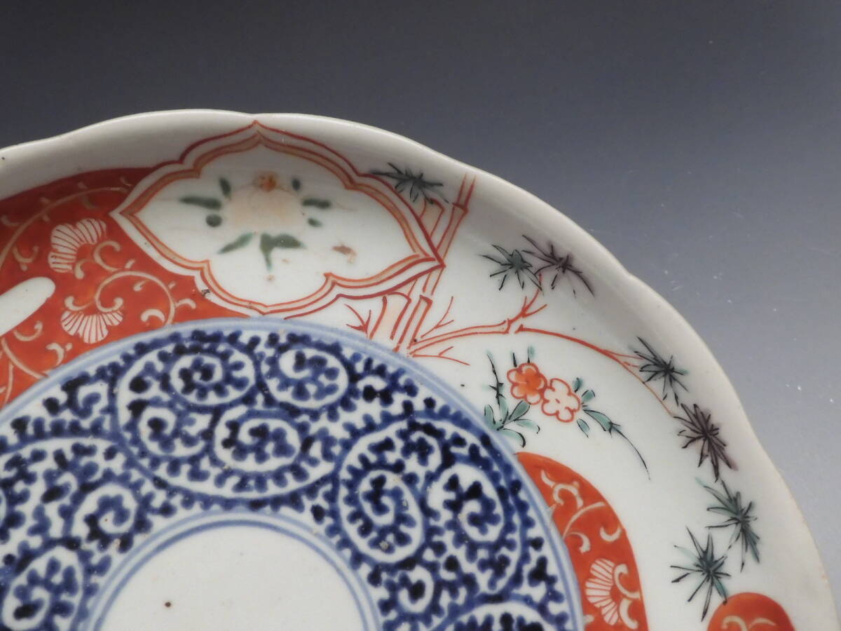 | ○梗○古伊万里 色絵 染付 竹花草 蛸唐草文 七寸 飾皿 無傷完品 江戸期 K60◇ |