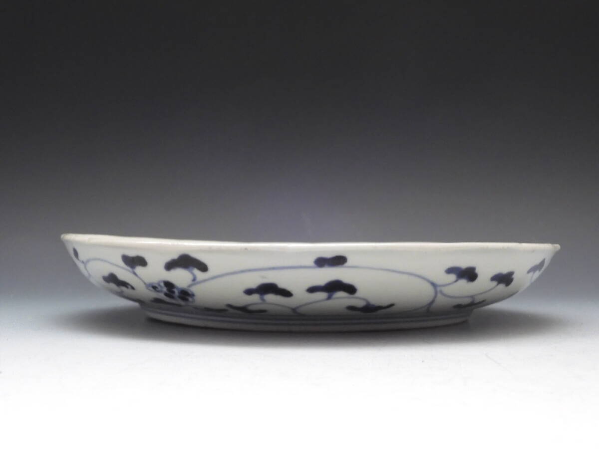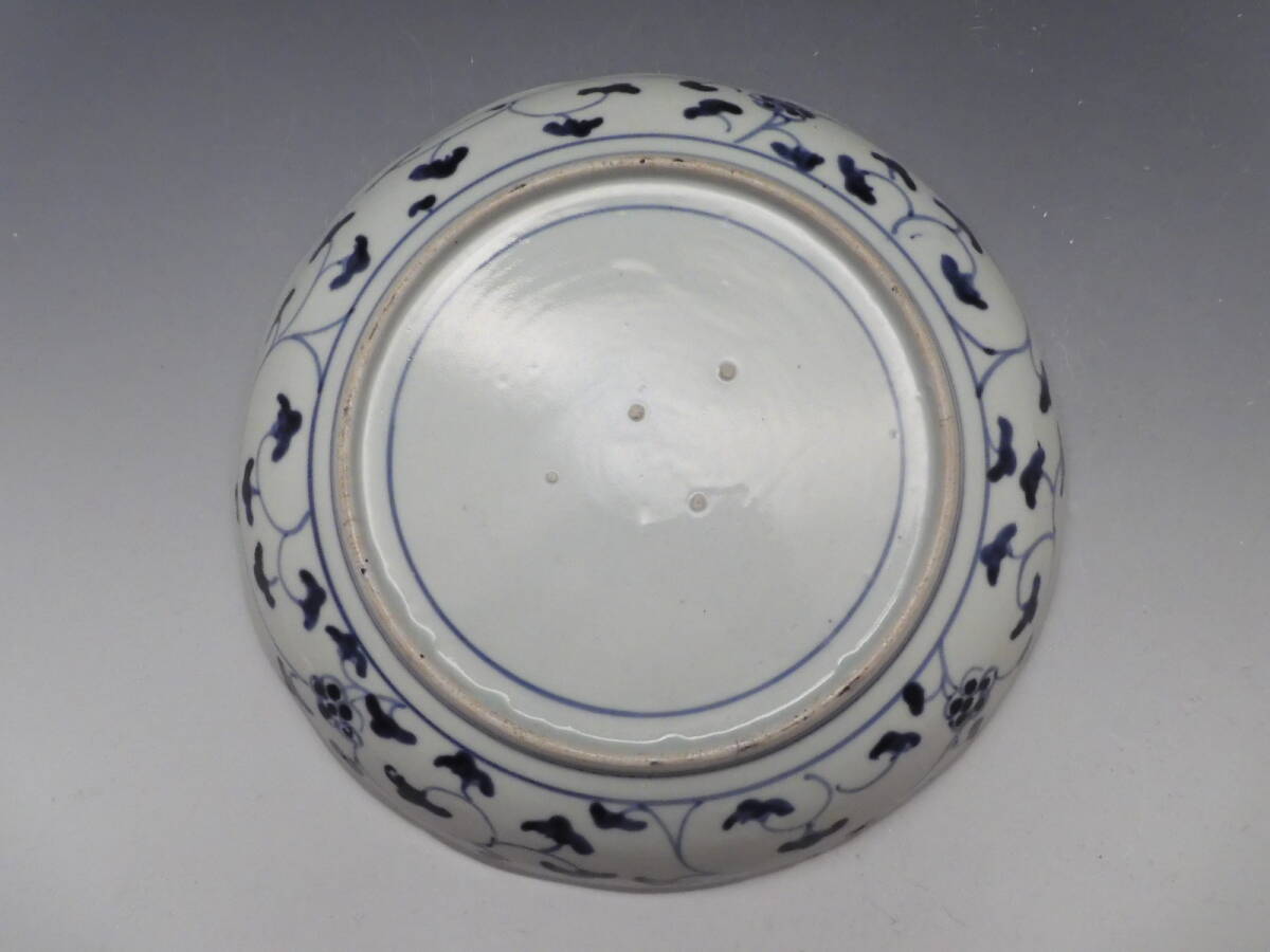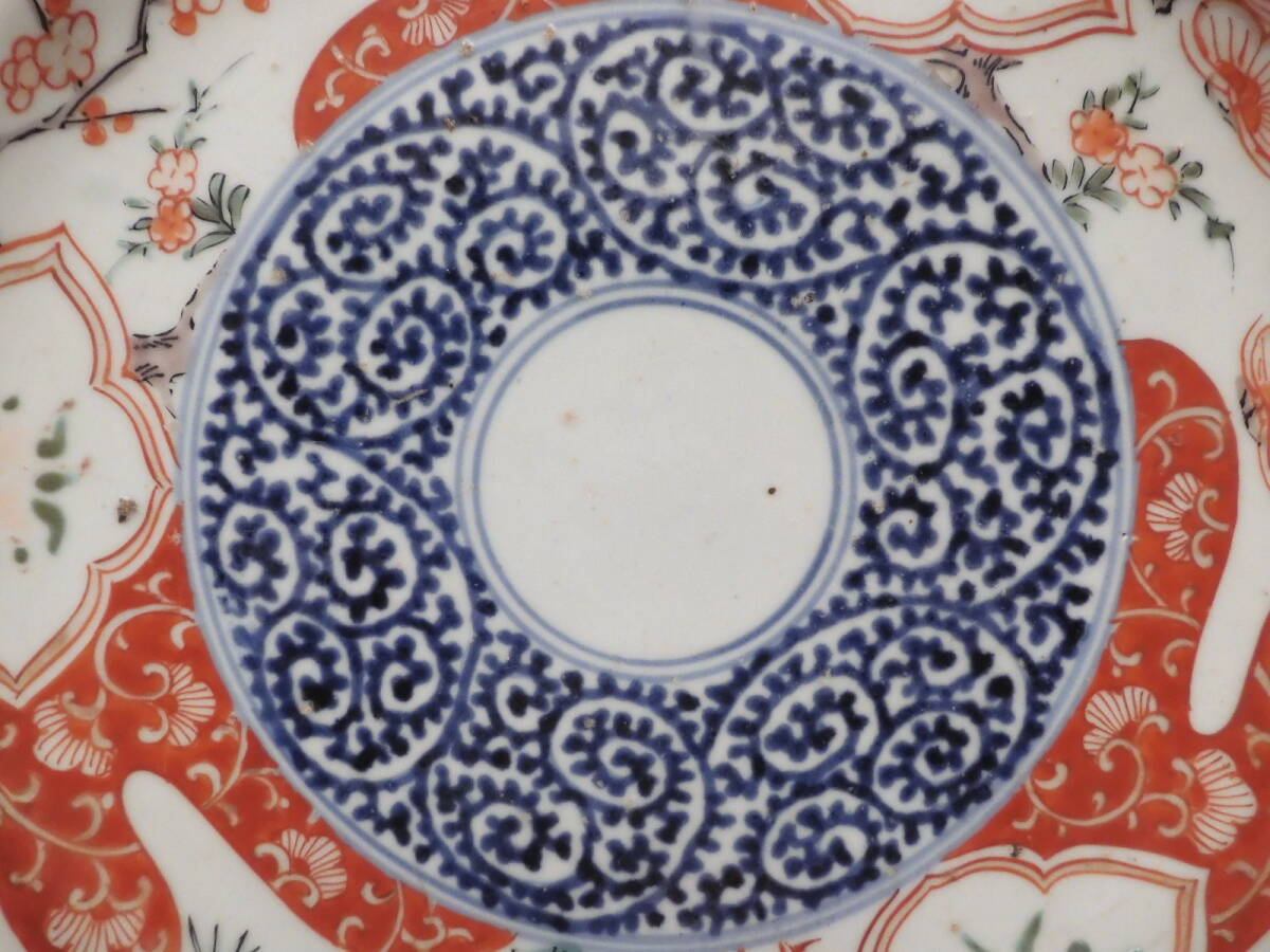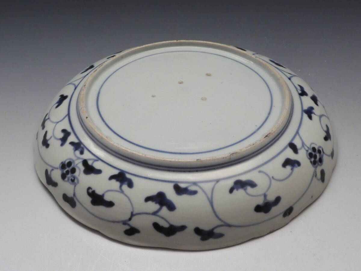 | ○梗○古伊万里 色絵 染付 竹花草 蛸唐草文 七寸 飾皿 無傷完品 江戸期 K60◇ |