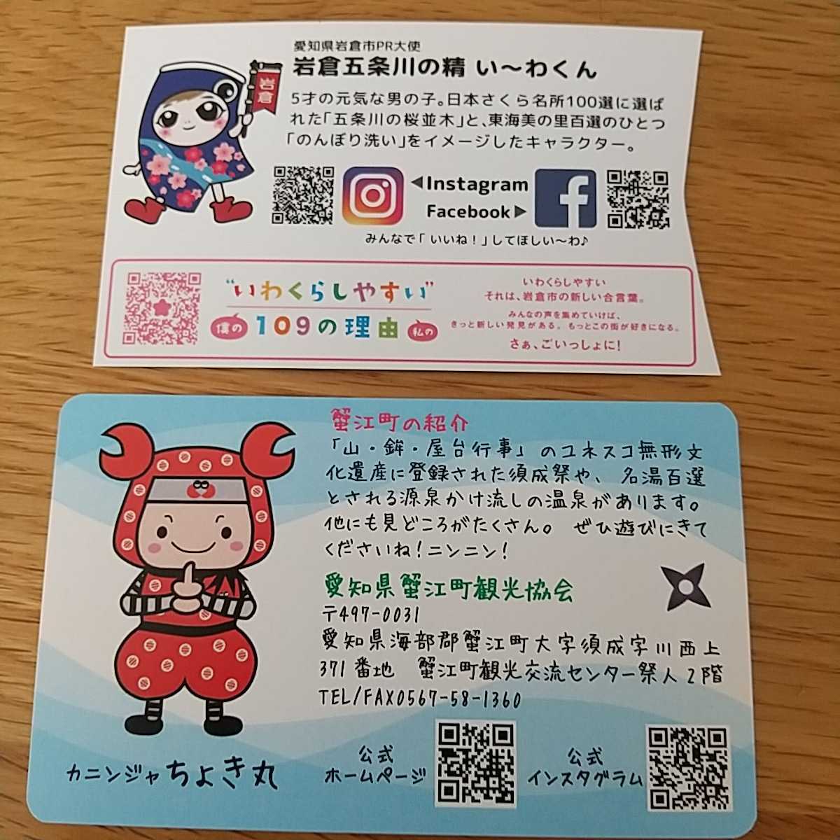 【非売品】愛知県蟹江町 カニンジャ ちょき丸 ゆるキャラ い~わくん 岩倉市 カード 公式キャラクター トレカ風