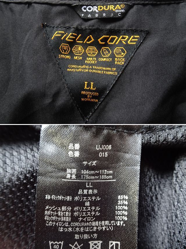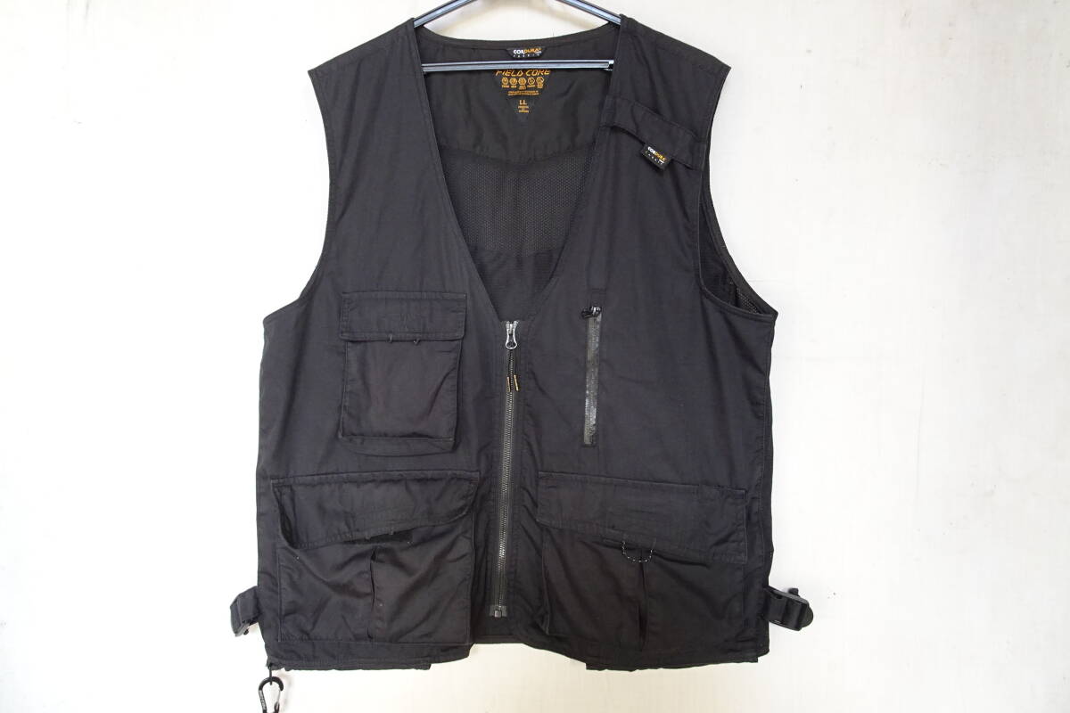 FIELD CORE/品番UJ006/ユーティリティベスト/Vネック/前ジップ/メッシュ切替/裾サイドベルト/アウトドア/黒/ブラック/LLサイズ(11/12R7)