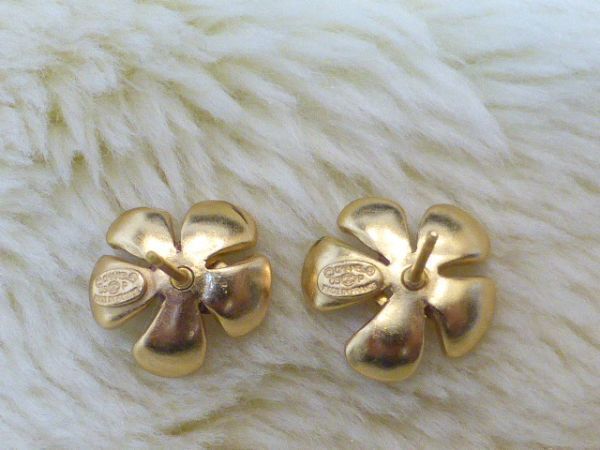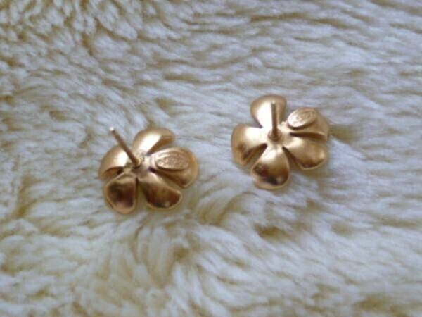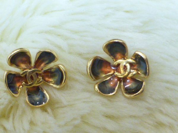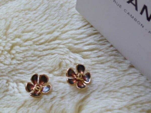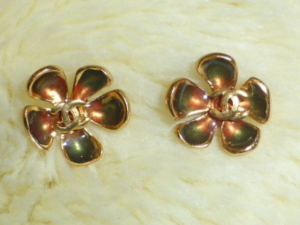 ☆送料無料☆CHANEL シャネル メタリックブロンズ系 お花型 ピアス(USED)