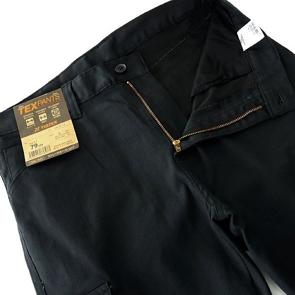 | 新品 未使用 紙タグあり ウエスト79(Mサイズ相当) ※商品に記載されたサイズ・寸法です※ ウエスト79cm(内回り1周) 股上28cm 股下79cm 裾幅16.5cm 腿幅28.5cm(股下10cm部分) 綿71% ポリエステル26% ポリウレタン3% ブラック |