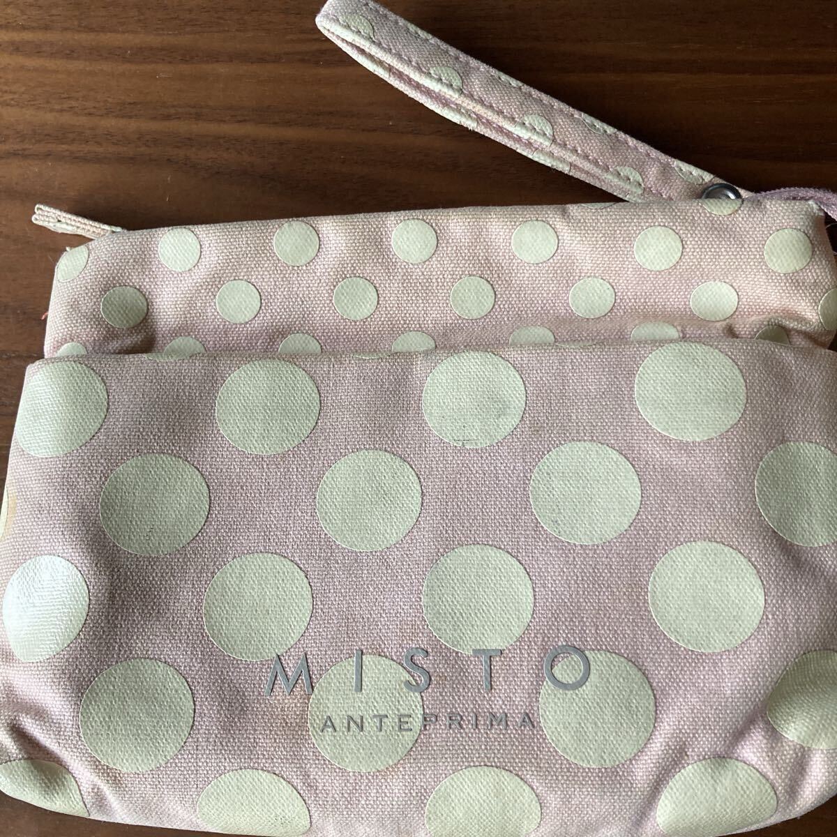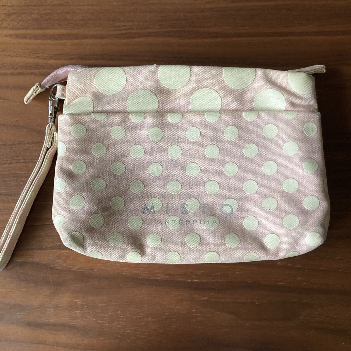 アンテプリマ ミストのドット柄ポーチです。外側は薄汚れございます。内側は比較的綺麗です。写真ご確認の上ご入札をお願いいたします。定形外可です。