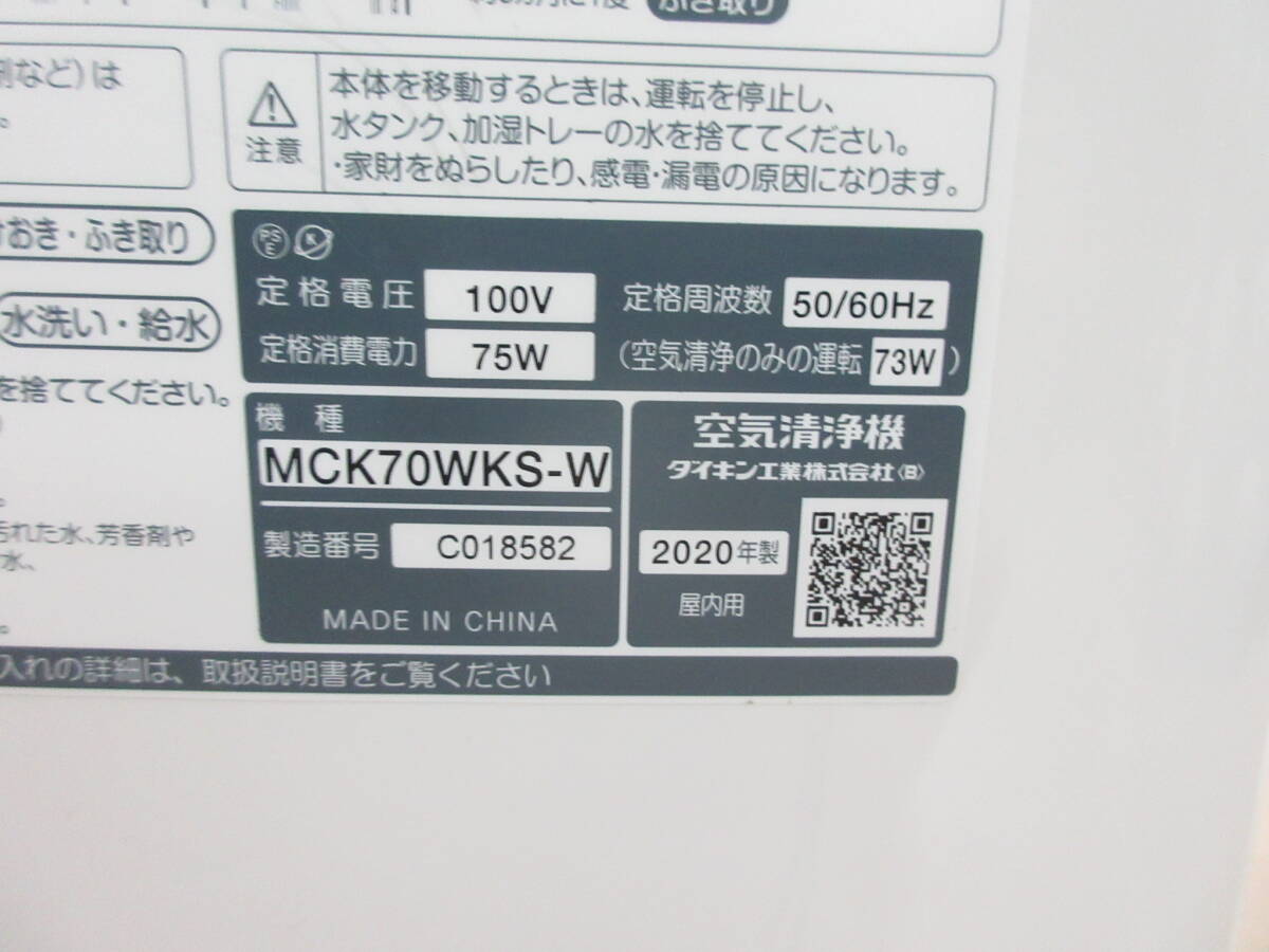 | ダイキン 加湿空気清浄機 MCK70WKS-W 20年製 動作確認済み 中古現状 | |