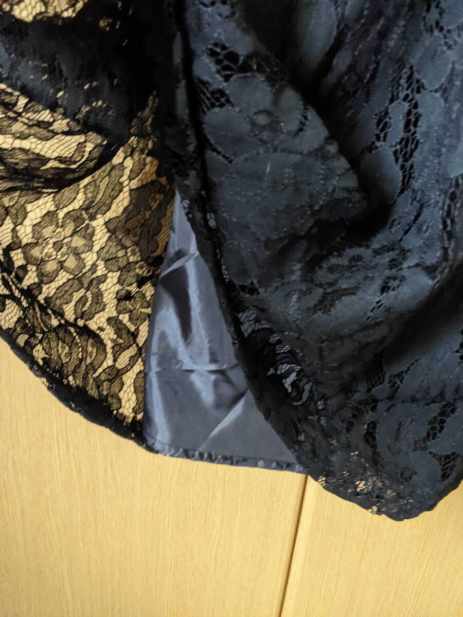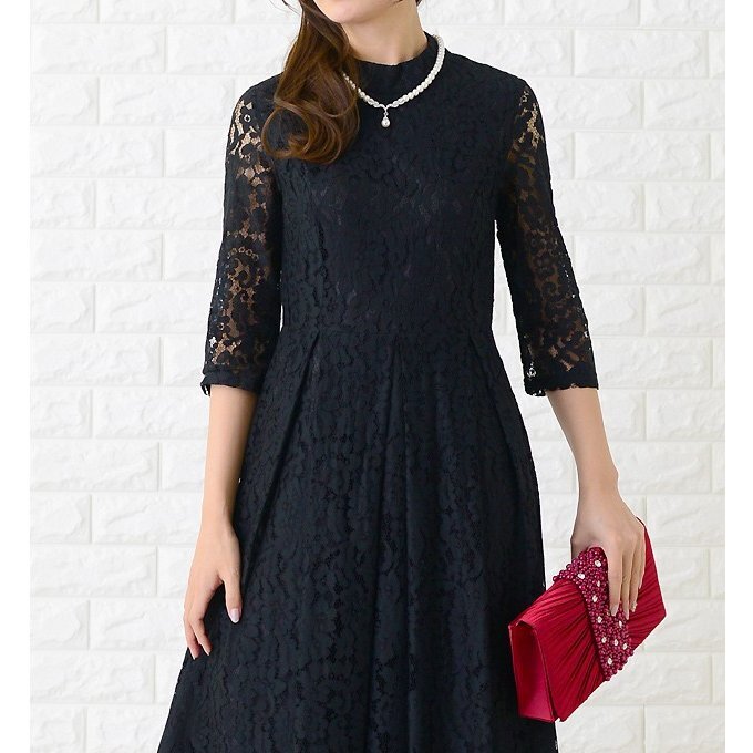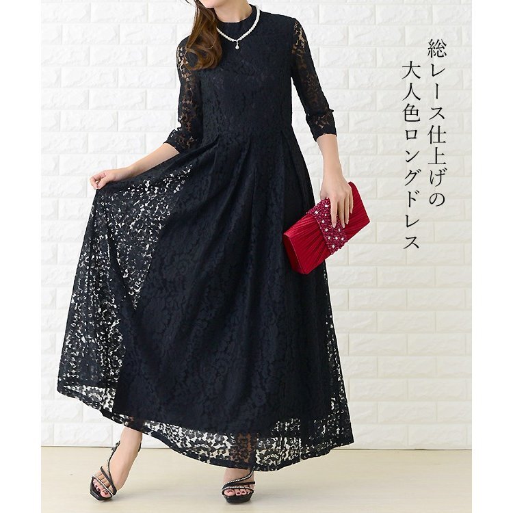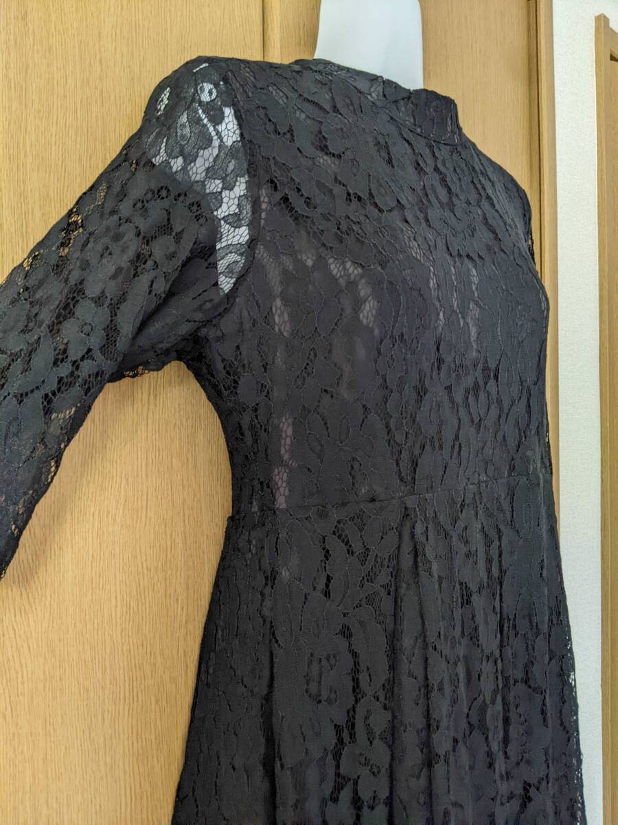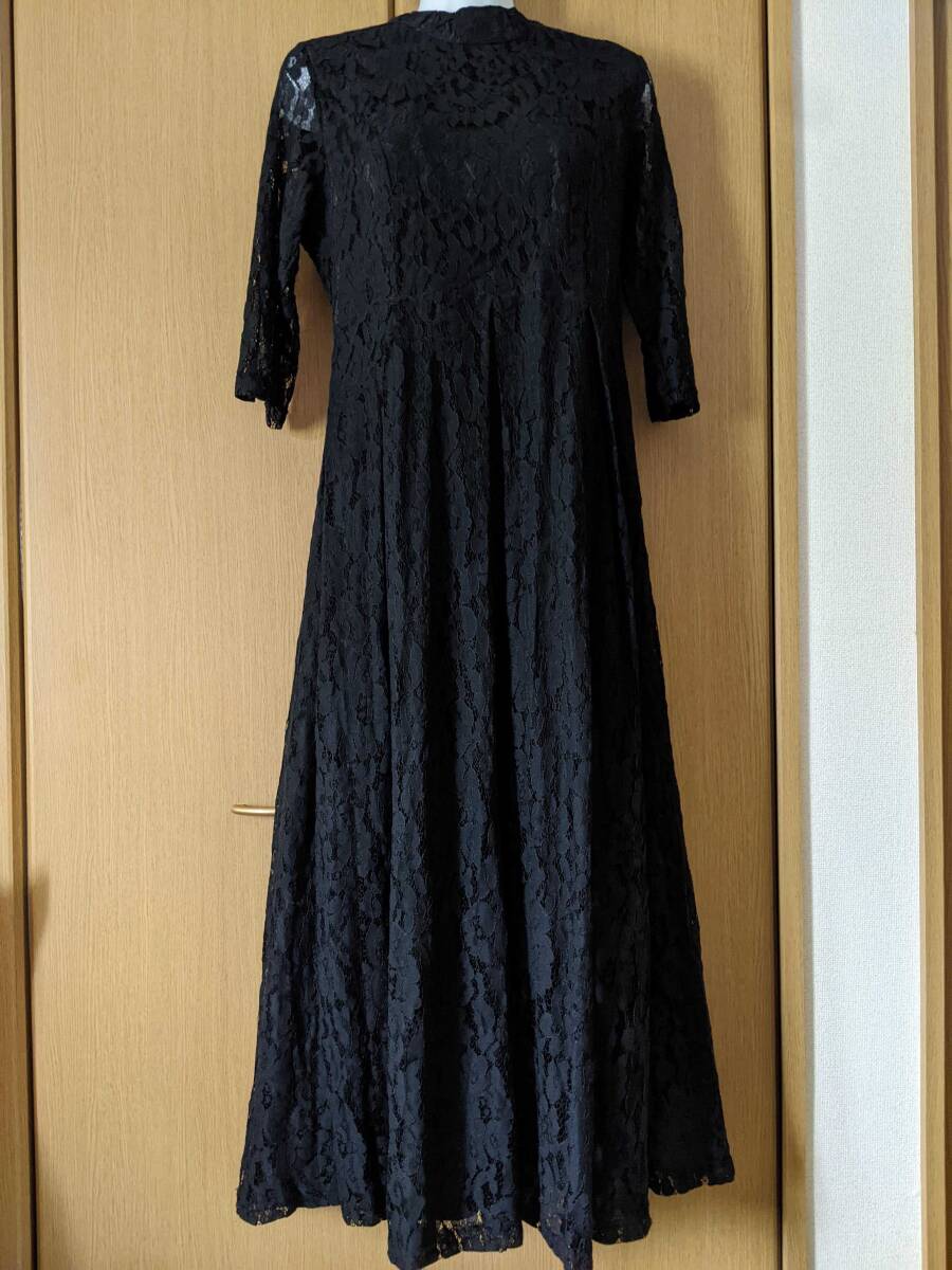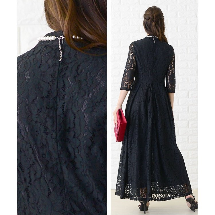 タグ付き レース ミニハイネック 7分袖 フォーマルロングドレス 黒系 サイズL 冠婚葬祭 新年会 | |||