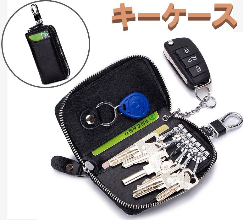 キーケース 本革 ブラック レザー 鍵入れ 牛革 シンプル レザーキーケース キーリング キーフック n521