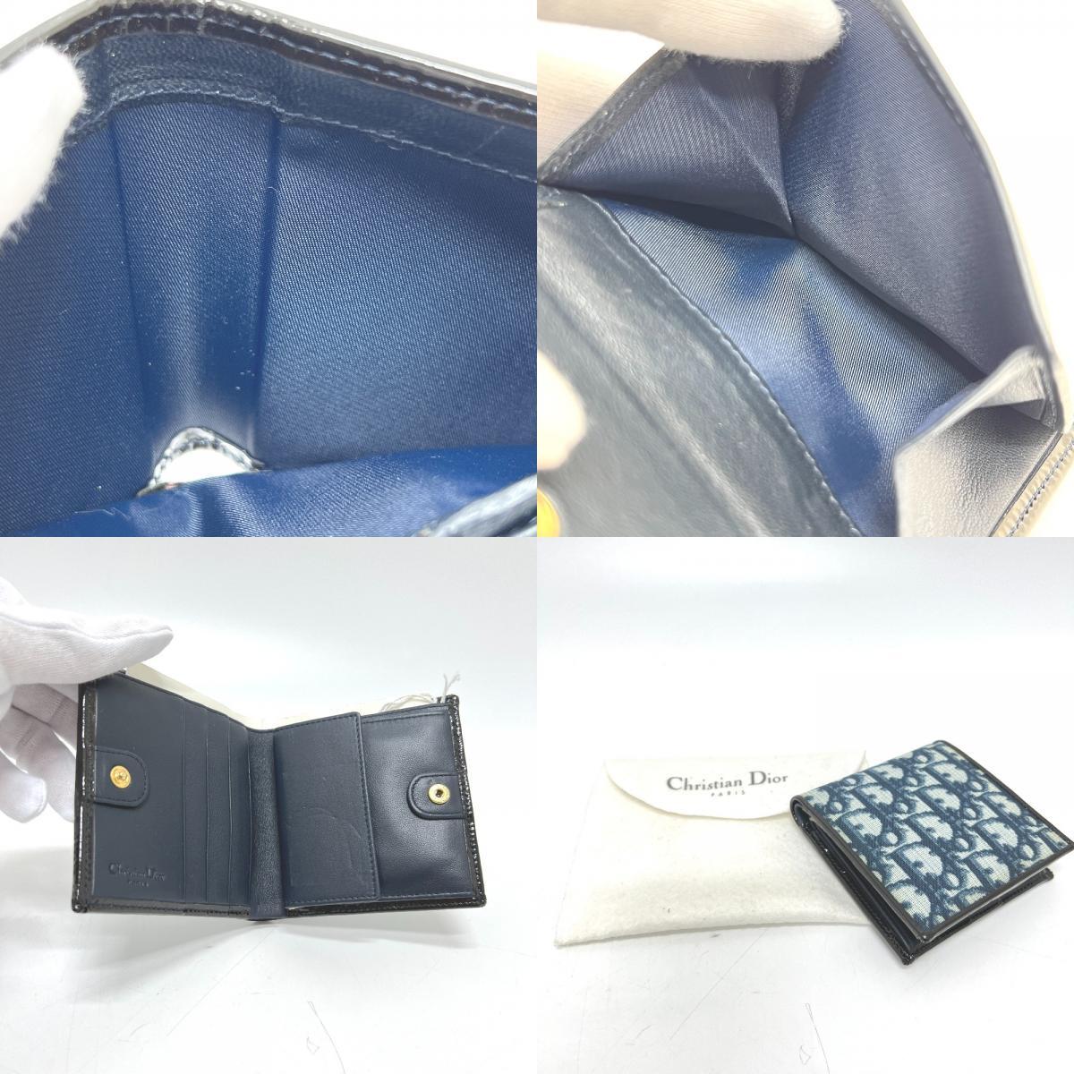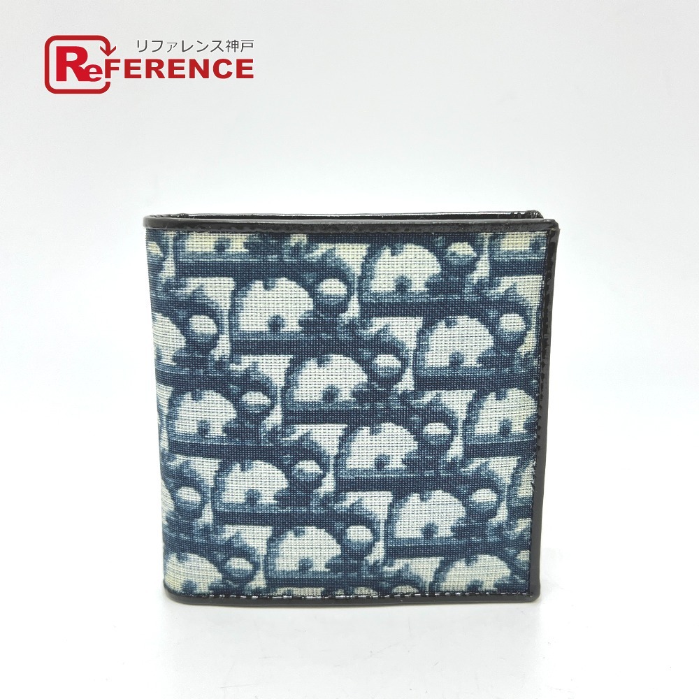 Christian Dior クリスチャンディオール トロッター 財布 ウォレット 折り畳み 2つ折り財布 ブルー レディース【中古】