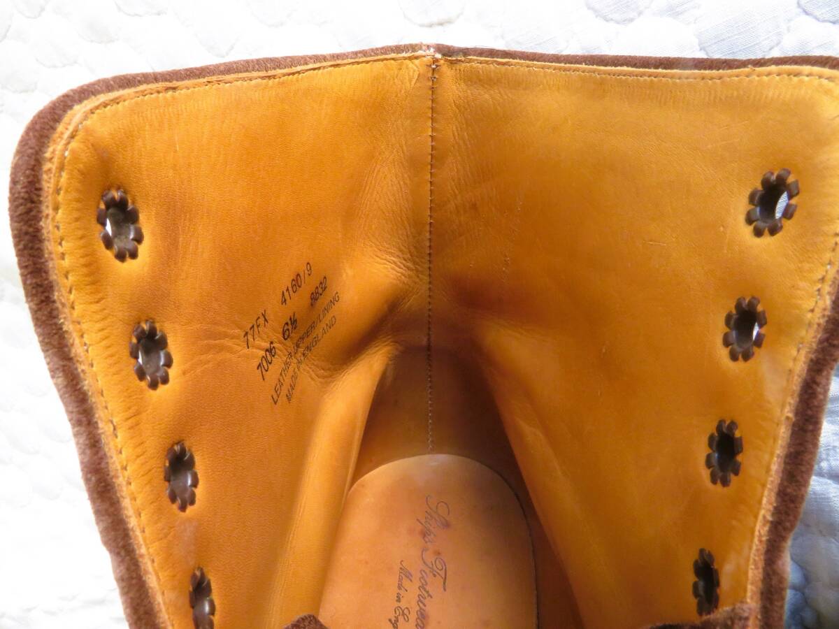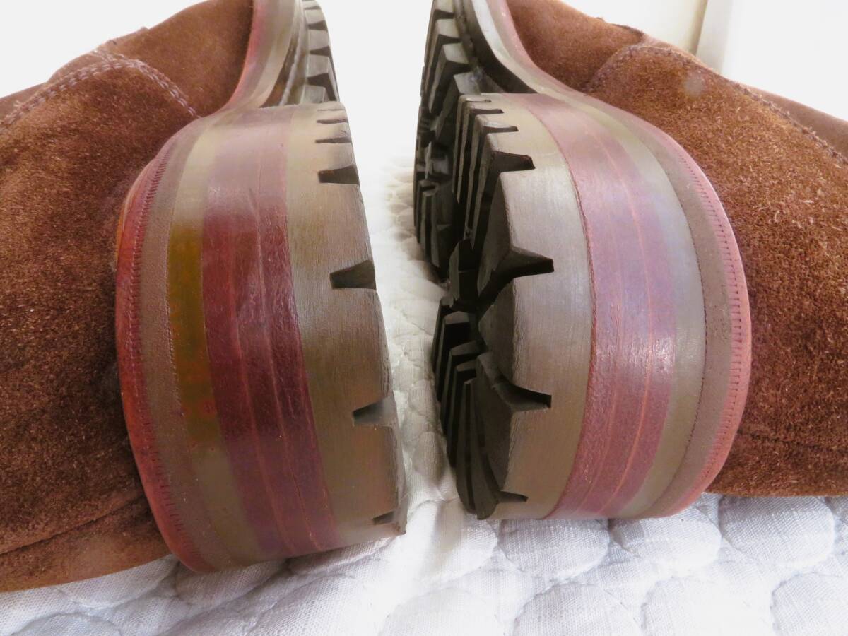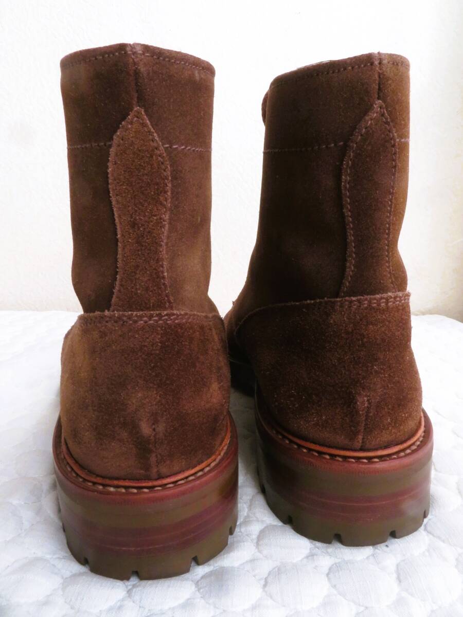 中古。箱無し。サイズUK6.5。(25.5CM位。アウトソールつま先~踵約29cm。幅約11cm。 多少の誤差は御理解下さい)  *シップス別注~アルフレッドサージェント。スエードブーツです。イングランド製。*ブランド名は刻印されていません。色 ブラウン。アッパー~スエード素材。7ホール。コマンドソール。無骨と上品な感じを兼ね備えた絶妙なブーツだと思います。*多少使用に伴なう擦れ傷汚れ感あります。やや色むら感あり*見た目より使用感あるコトがあります。*中古品にご理解頂ける方のみ入札お願い致します。*画面〇汚れに見えるのはレンズ汚れです。(全体の感じは写真を参考にして下さい。画像の色と多少異なることあります)質問など返答に時間がかかることがあります。御理解下さい。*商品に対してあまりにも神経質、新規、評価の悪い方はご遠慮下さい。仕事が忙しい為返答に時間がかかることがあります。御理解下さい。ノークレームノーリターンキャンセル無しでお願い致します。システム料+消費税は頂いていません。東京からゆうパックでの発送になります。
